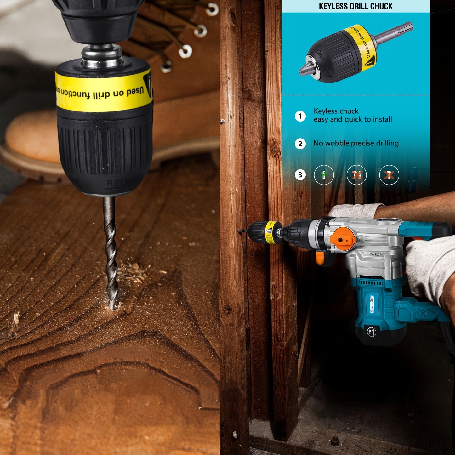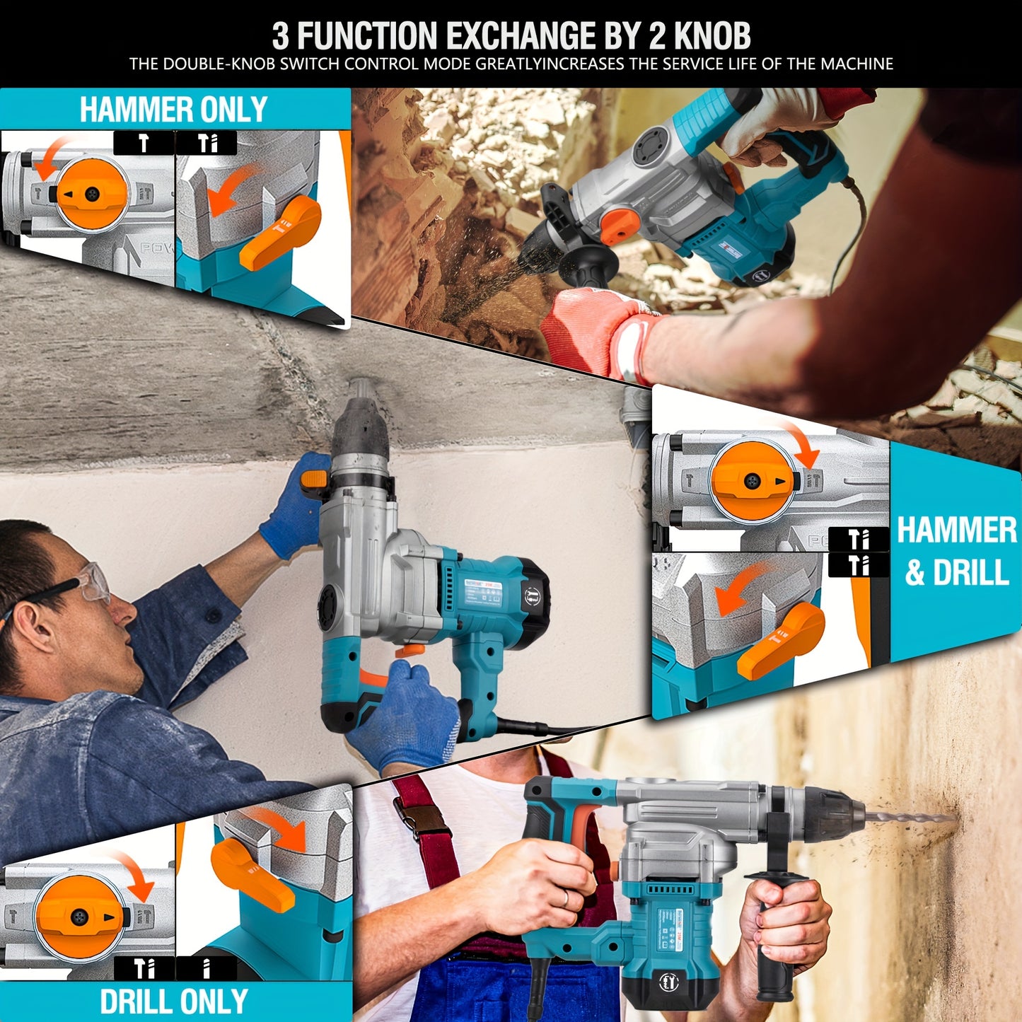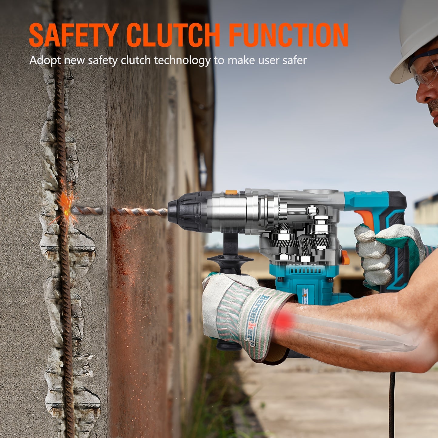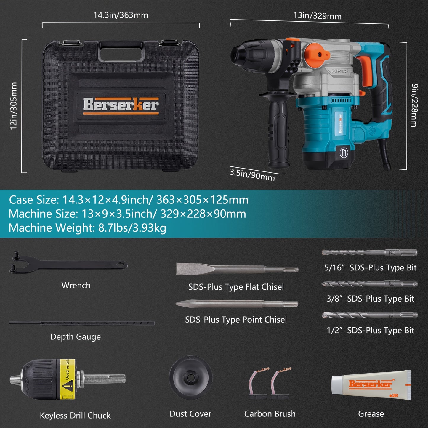 Berserker 25M 1-1/8" SDS Plus 26mm Rotary Hammer Drill, 1050W, 120V 60Hz, with Safety Clutch, 850 RPM & 4000 BPM, 3 Functions Corded Rotomartillo for Concrete - Includes Drill Chuck, 3 Drill Bits, Flat Chisel, Point Chisel, Carrying Case