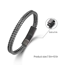 Bracelet Material: Made of stainless steel, free from lead and hypoallergenic, causing no irritation to sensitive skin. Additionally, the surface is treated with vacuum plating technology, so it never loses its color. This is a luxury-grade piece of jewelry, making it an ideal gift for men