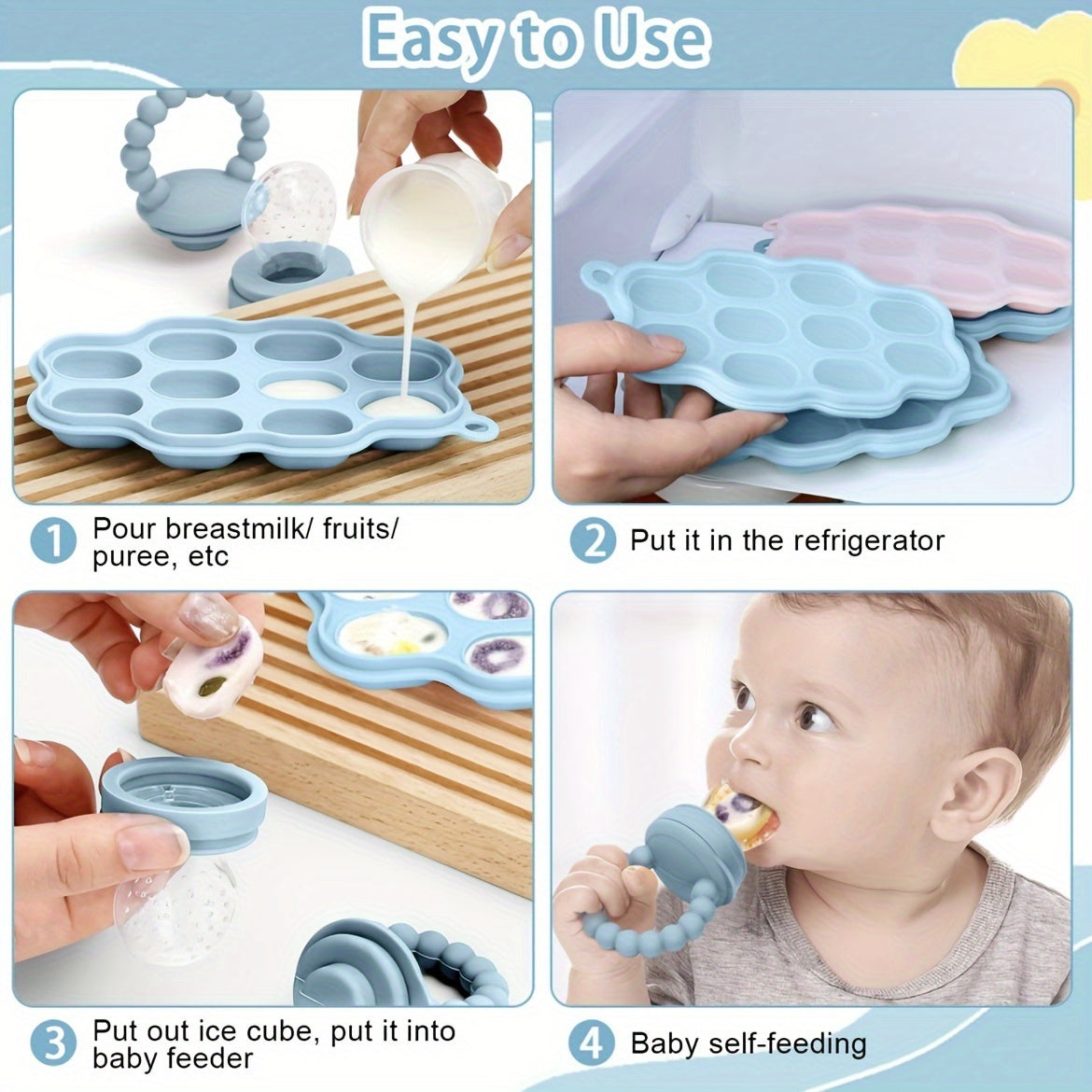 Breast Milk Popsicle Mould With Fruit Food Feeder Set, Silicone Breast Milk Freezer Tray For Fruit, Baby Food, Food Storage & Self Feeding, 3 Food Feeder Pouches Included