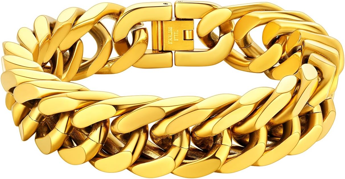 ChainsHouse Stainless Steel Cuban Link Bracelet, 8mm/12mm/17mm Width, 7.5"/8.3"/9", 18K Gold Plated Chain Wrist Bracelets for Men Women, Send Gift Box