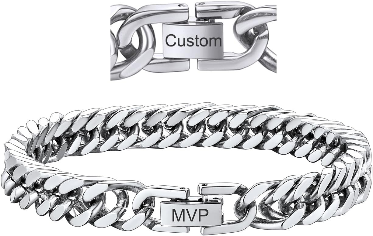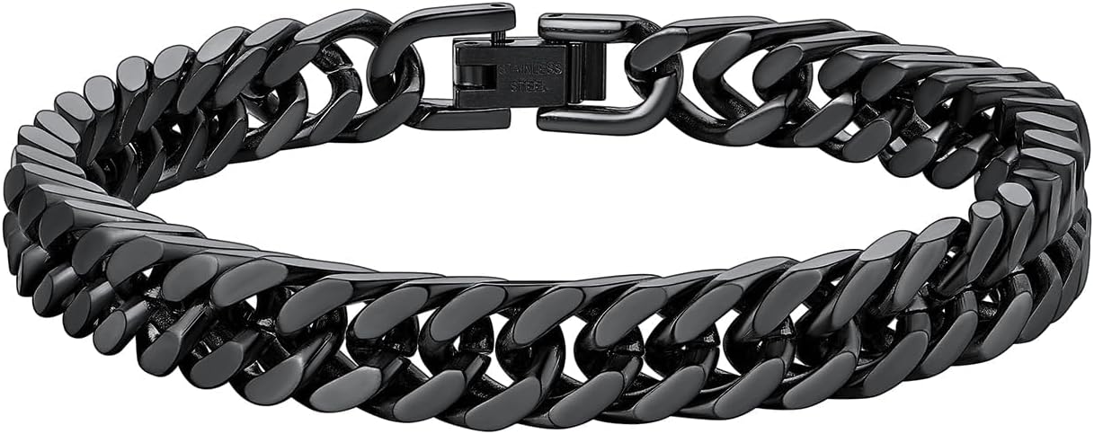 Durable Stainless Steel Cuban Bracelet: These Chain Bracelets are essential jewelry for punk rock men/women; They are lightweight, comfortable and great for daily wearing; Safe for sensitive skin