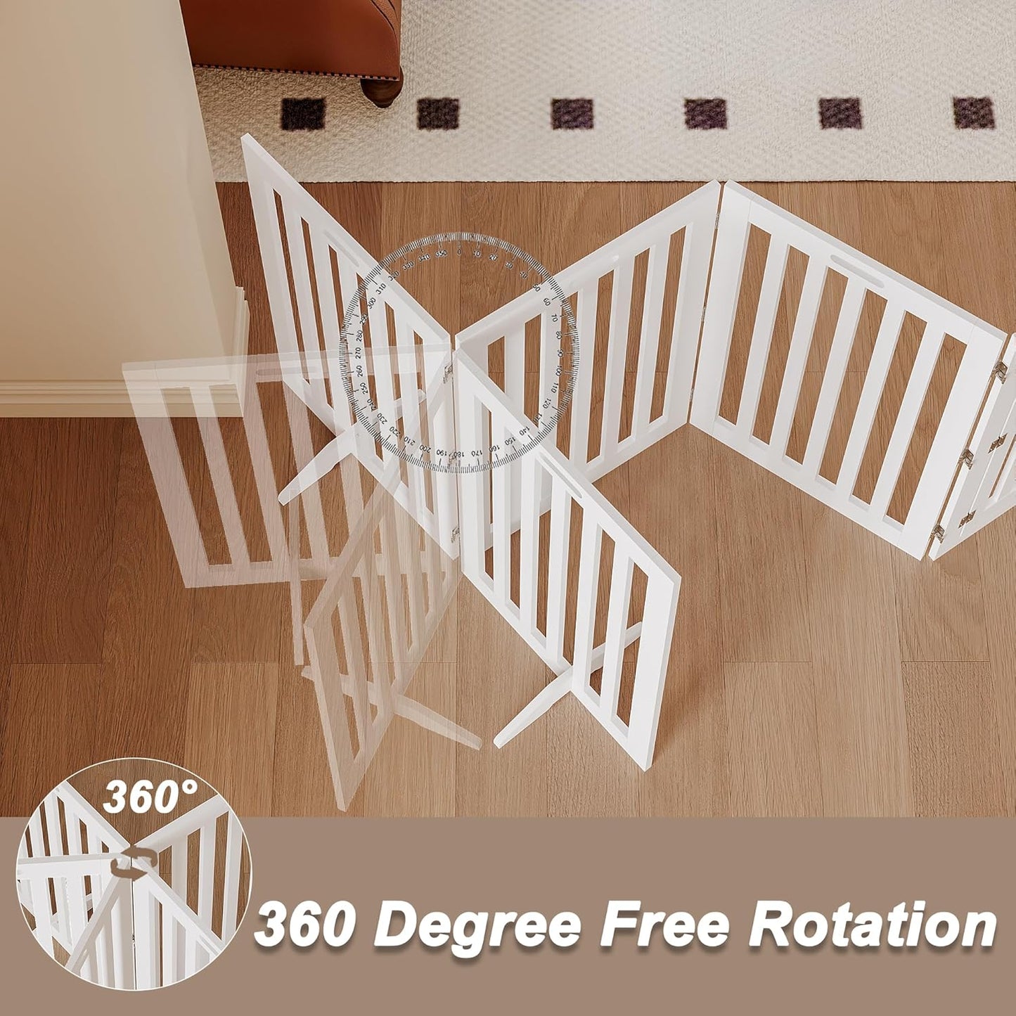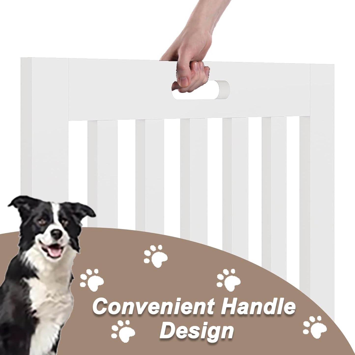 【Thoughtful Details】: The pet gate indoor adopts a 360-degree hinge design, which can be freely transformed into different shapes to meet the barrier requirements of different scenes. It is easy to fold and more convenient for storage. A handle is also designed above the fence for easier installation and movement. The anti-slip sticker at the bottom increases the stability