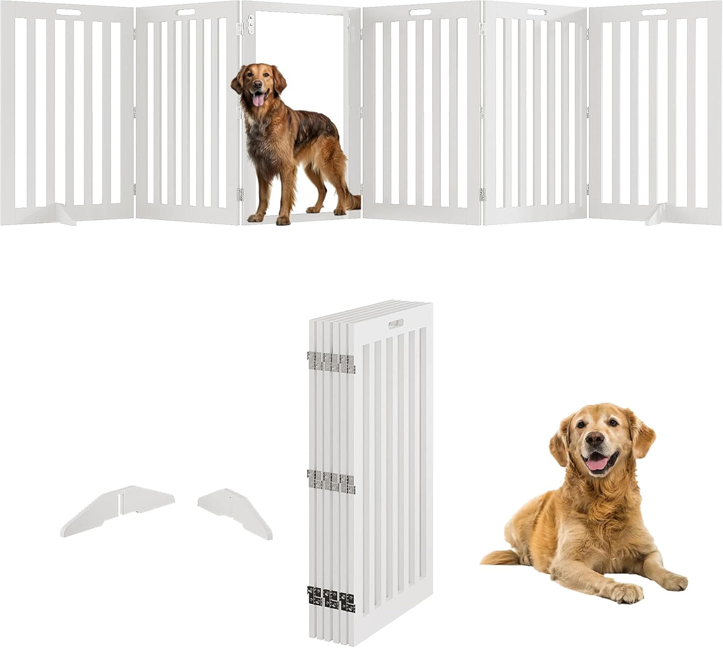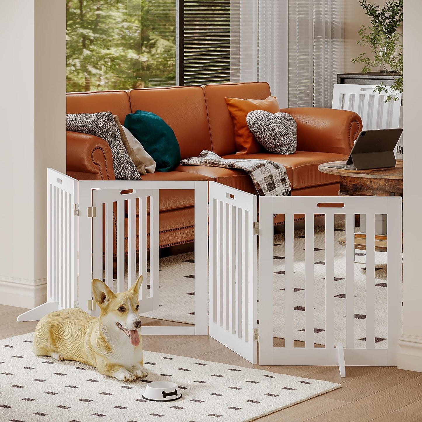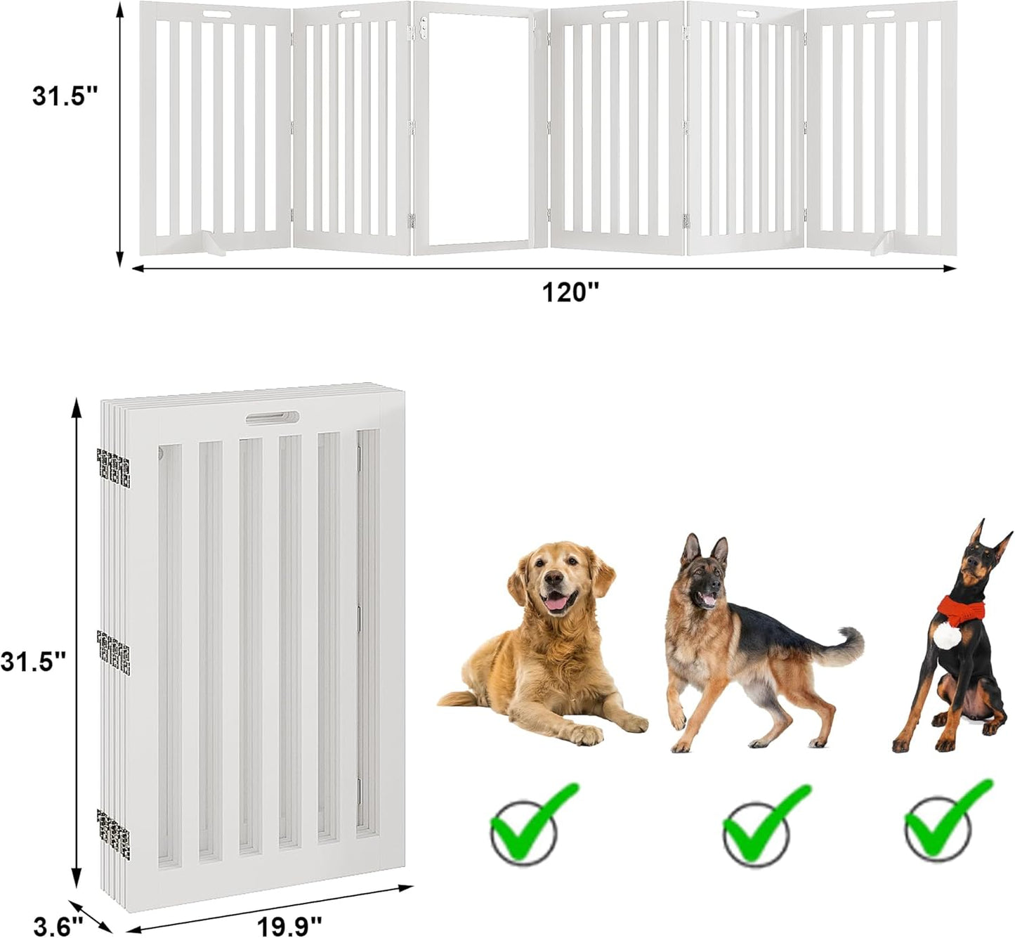 ChooChoo Wooden Pet Gates for Dogs Indoor with Door, 31.5" Free Standing Dog Gate with Support Feet for Dog Cat Doorways Extra Wide, Foldable Dog Fence Puppy gate with Handle for The House