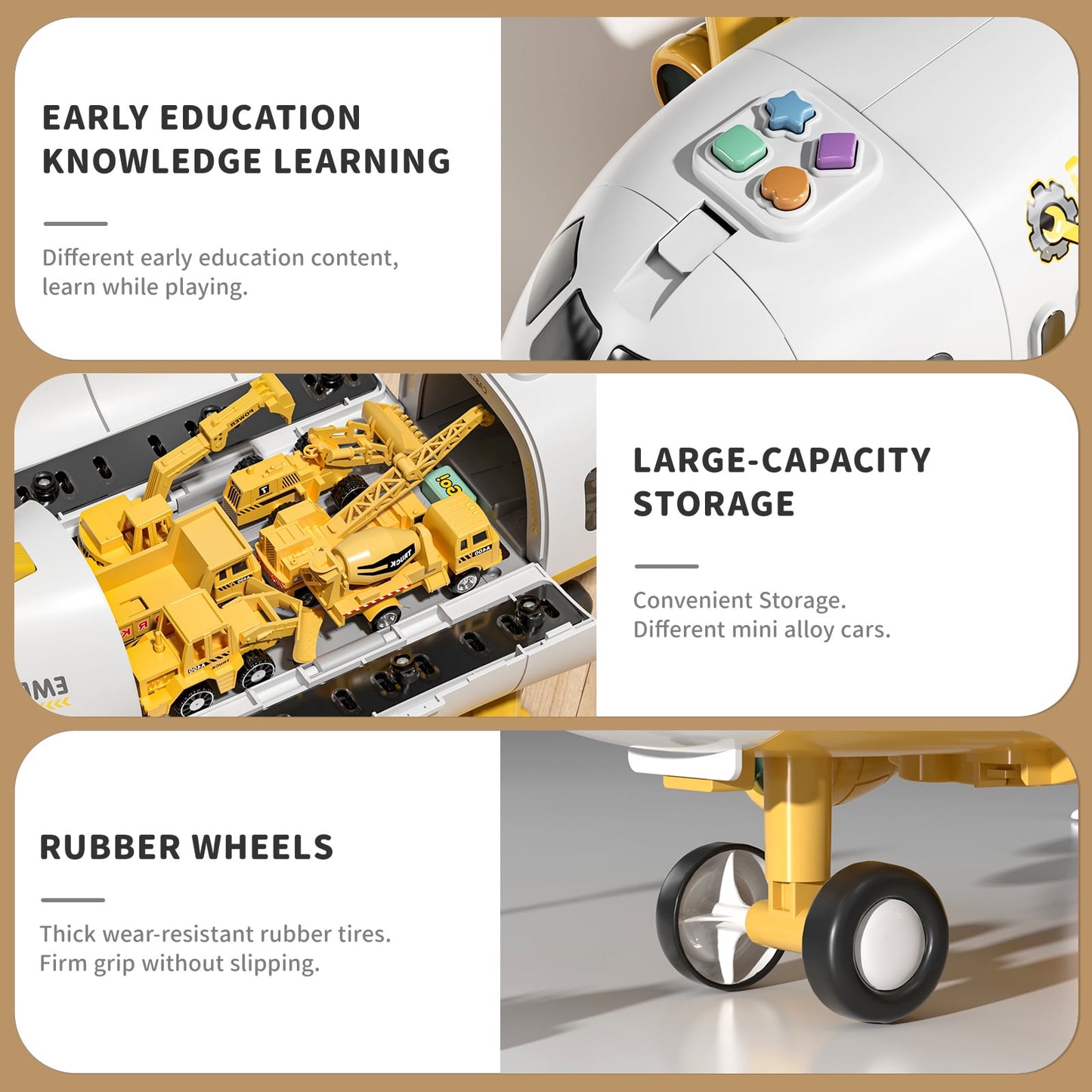 - Storage Airplane - The mini toy cars and road signs can be collected into the openable cabin at the free time. Open the tail of the plane, the cars can slide out of the cabin by inertia.