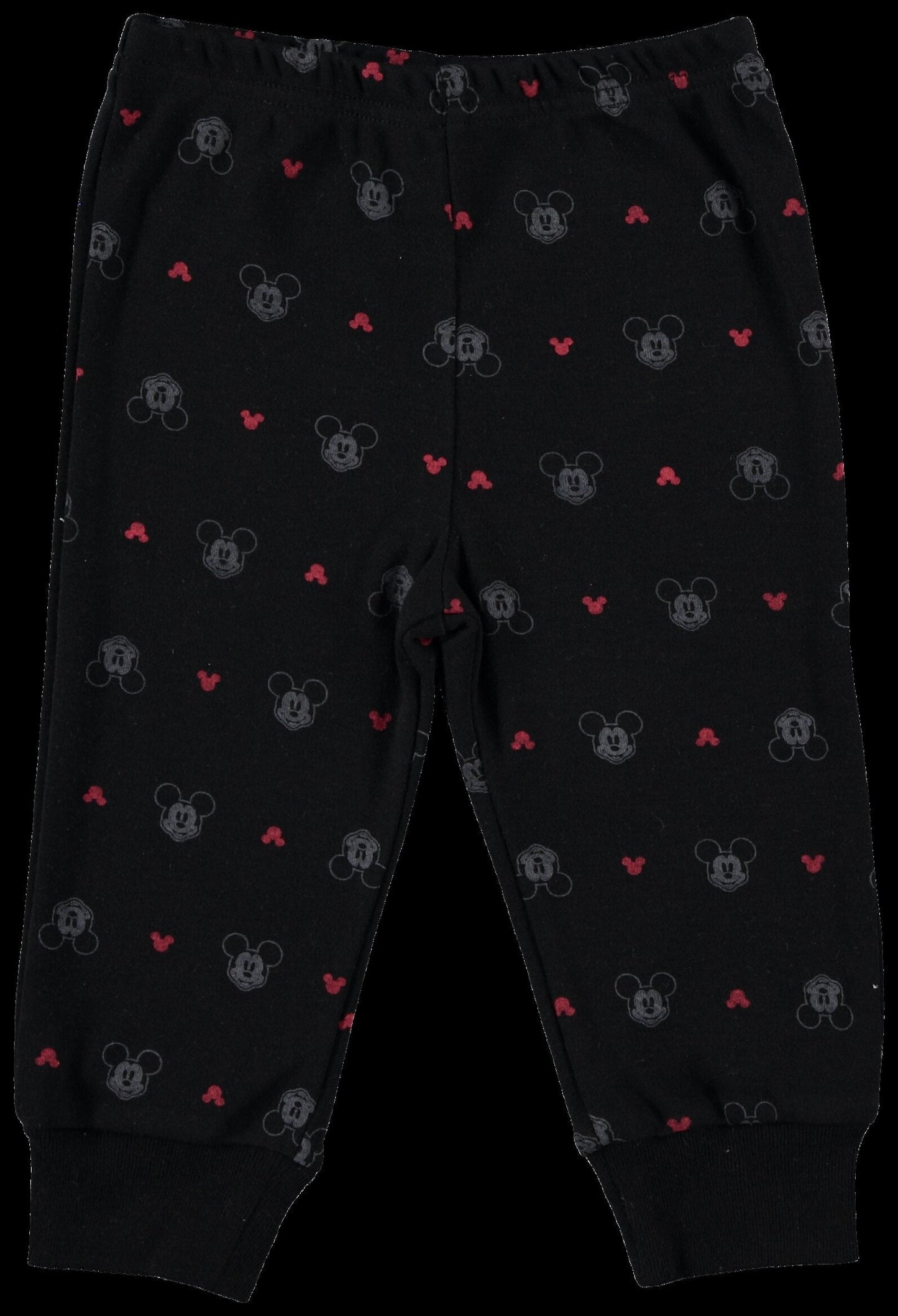 - Featuring a modern Mickey Mouse striking a happy pose on bodysuit; Mickey peaking over edge on bib; All-over Mickey head and face print on pants