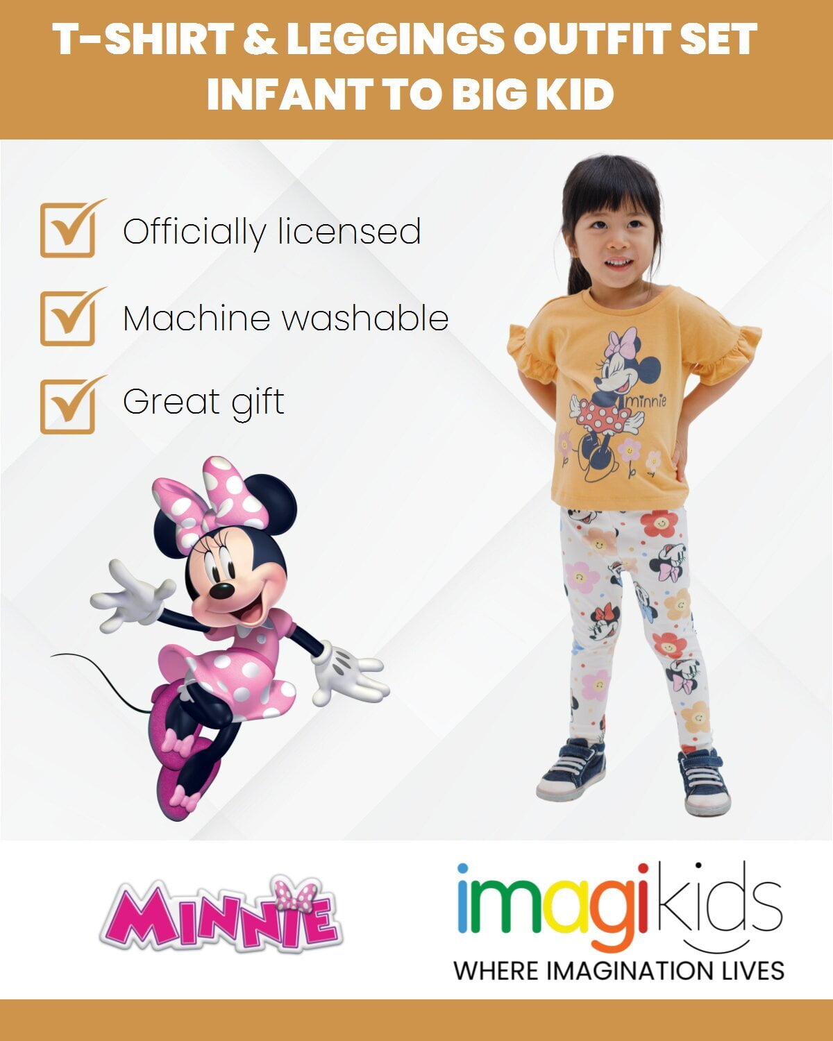 - Officially licensed Disney Minnie Mouse little girls short sleeve graphic tee shirt and leggings