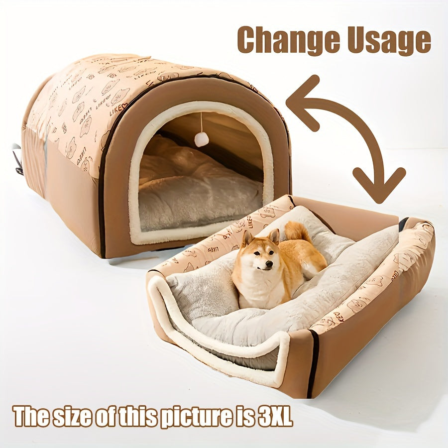 Dog House And Cat Cave | 2 in 1 Detachable Cat Bed with Ball-Shaped Pendant | Fleece Cat Bed, Indoor Cat Nest, Cat Shelter, Dog House, with Handle, Available in Various Sizes to Accommodate Pets of All Shapes.