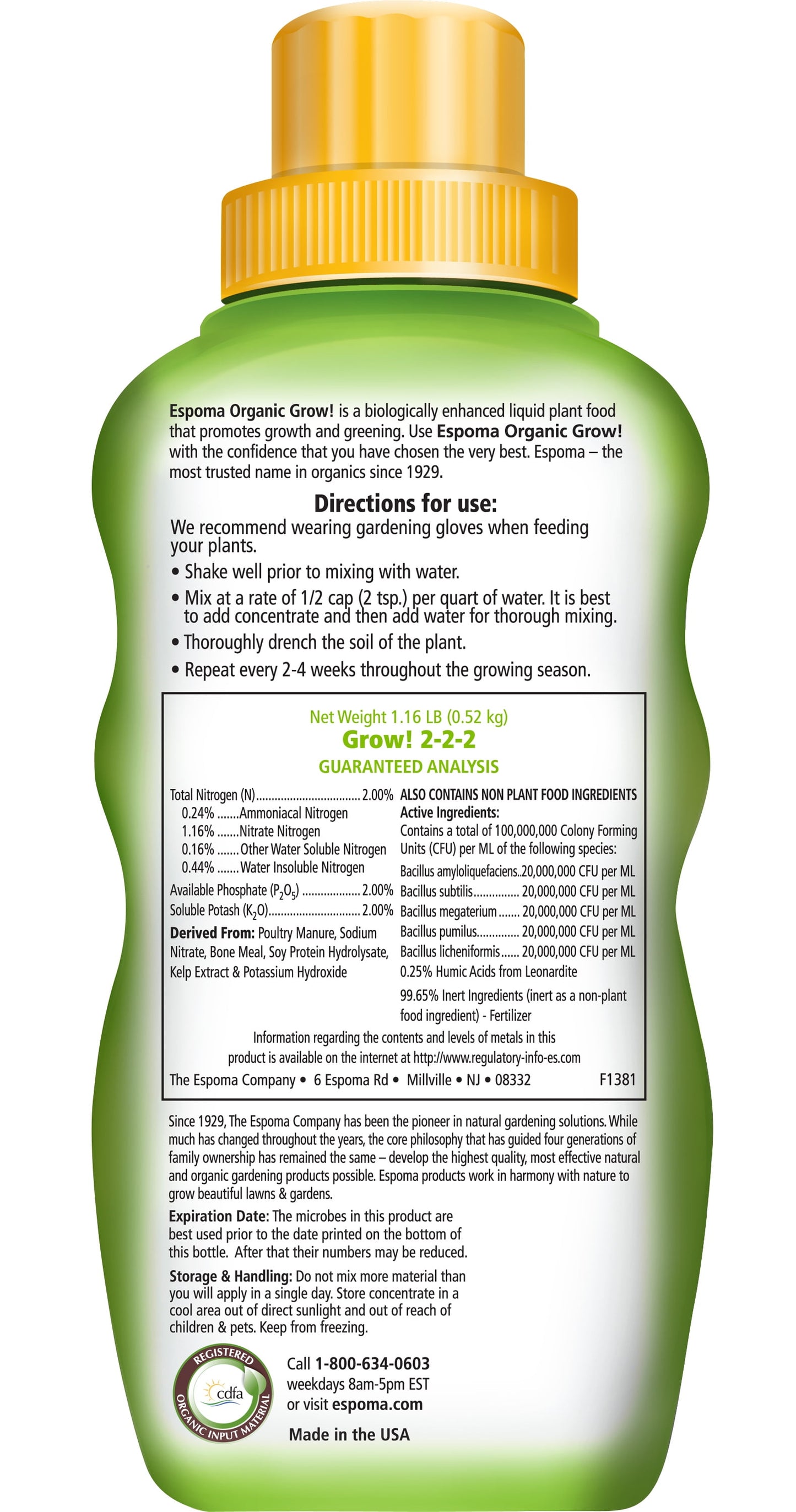 - FOR ORGANIC GARDENING: Grow! is approved for organic gardening; It is a registered Organic Input Material meaning it meets all requirements for organic production.