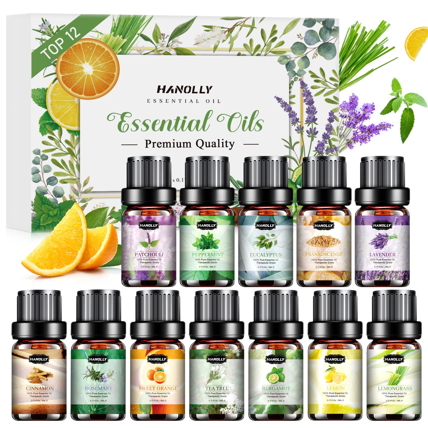 Essential Oils Set, 12 Pcs Essential Oil Kit for Diffuser, Humidifier, Candle Making, Aromas (12 x 5ml) - Best Gift for Women, Friends, Lover