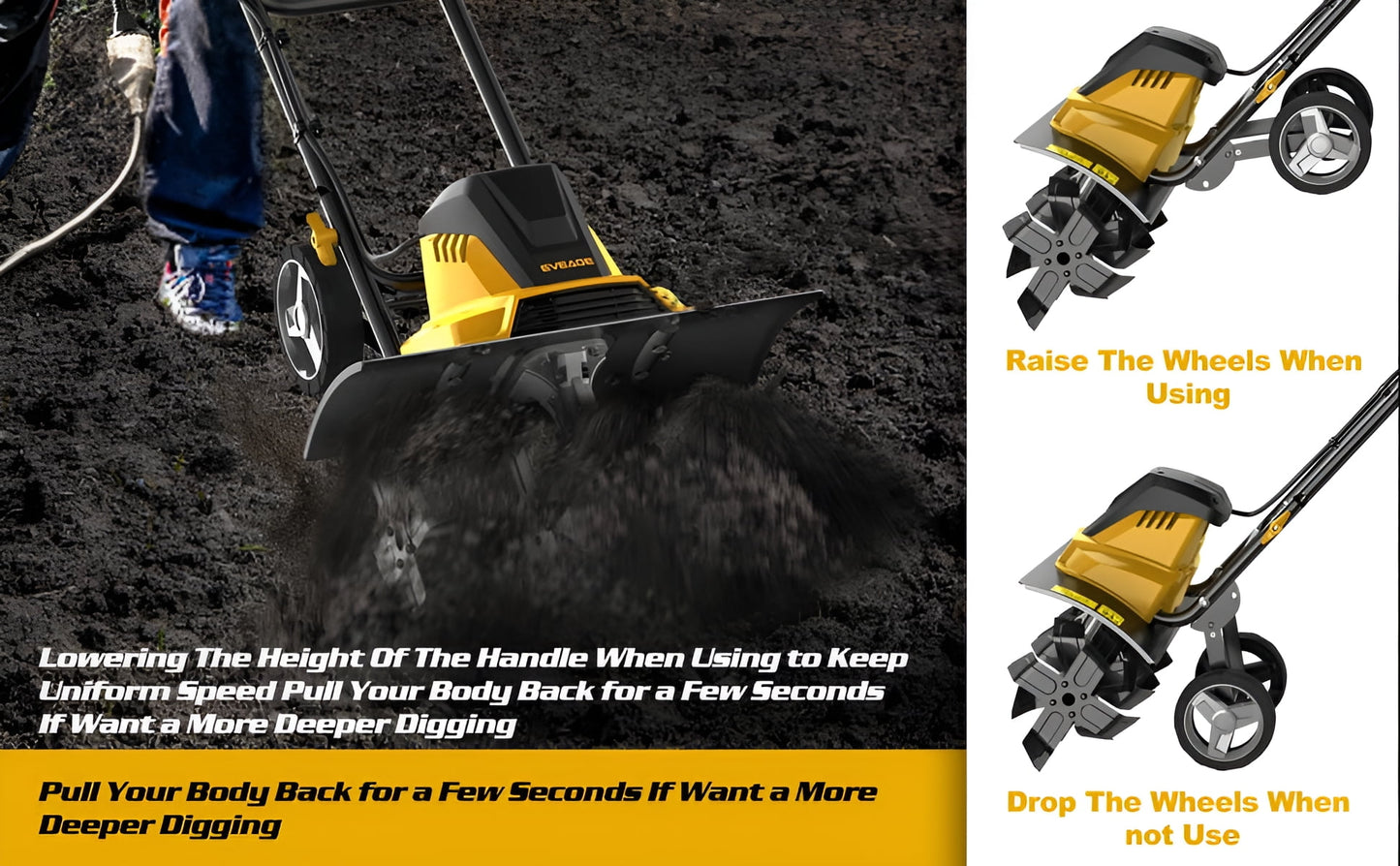 - Lowering The Height Of The Handle When Using to Keep Uniform Speed, Pull Your Body Back for a Few Seconds If Want a More Deeper Tilling
