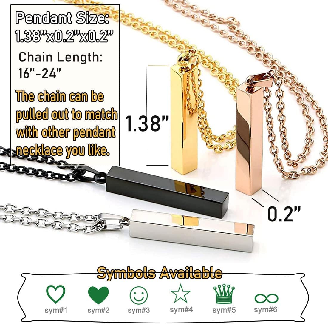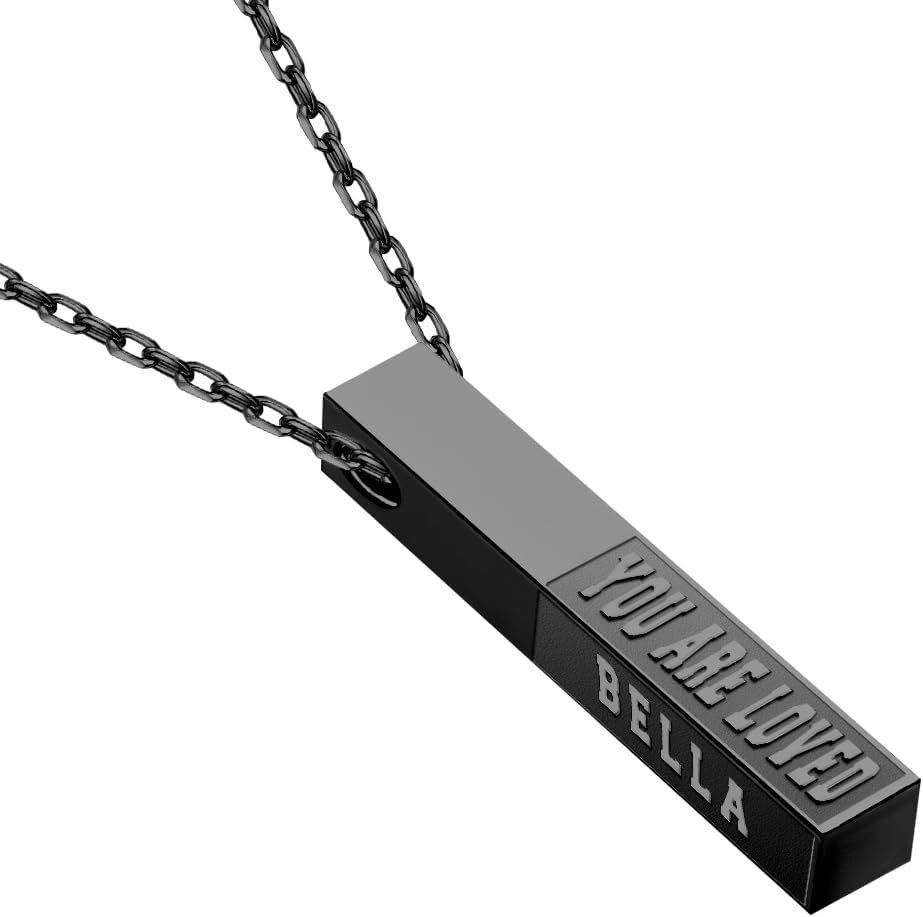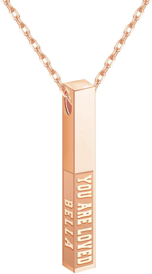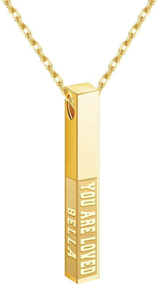 EVER2000 Personalized 3D Vertical Bar Necklace, Custom Necklace Engraved with Any Name Pendant Jewelry Gift