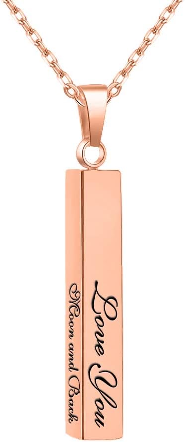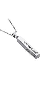 Free Engraved---Rectangle bar necklace with 4 sides engraved makes you special and shining on every occasion, any name letters, words, date, number, characters, symbols( ☺ ☹ ♡☪ ✉ ✈ ✪ ★✶✹ ✡ ) is available.