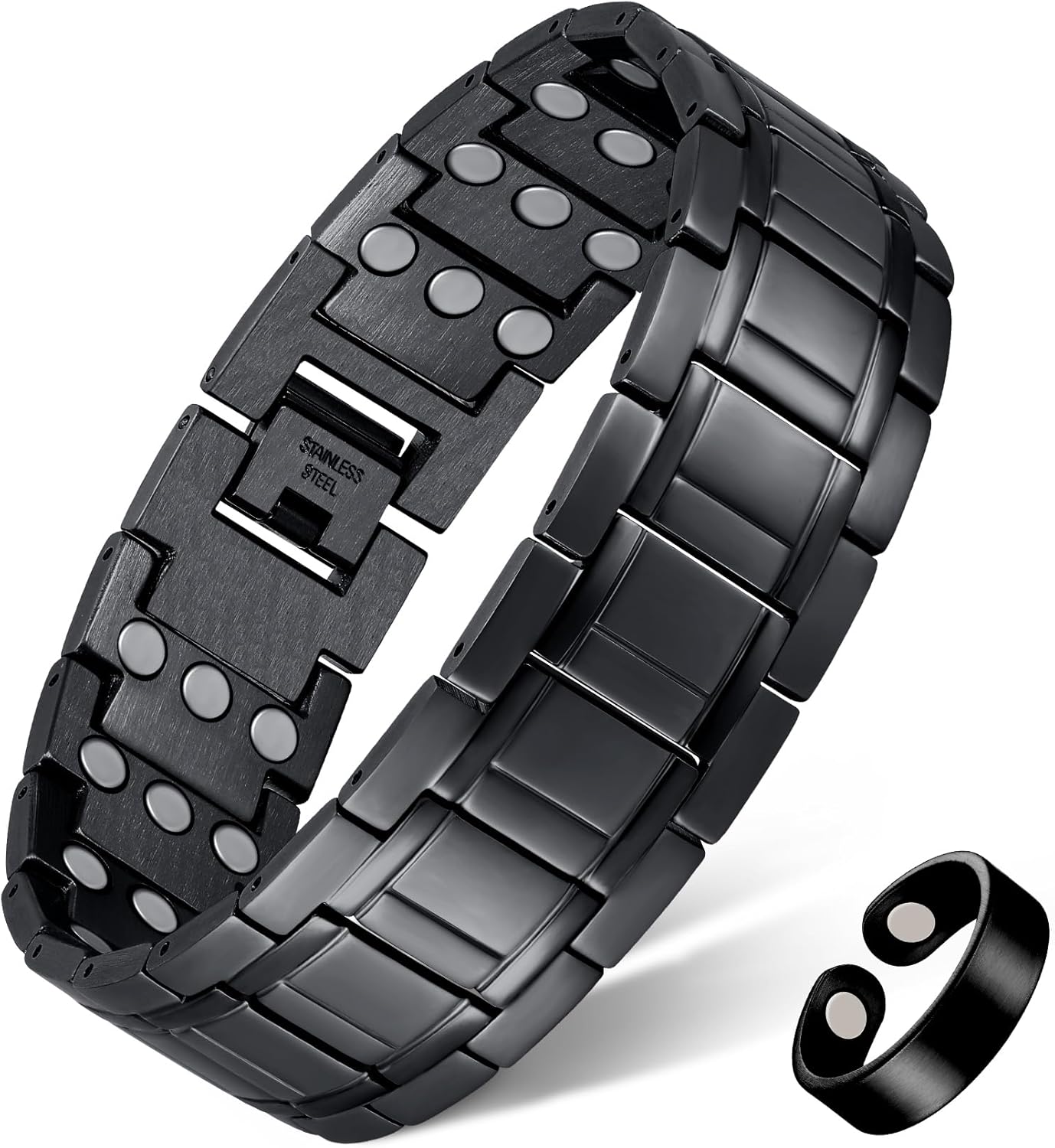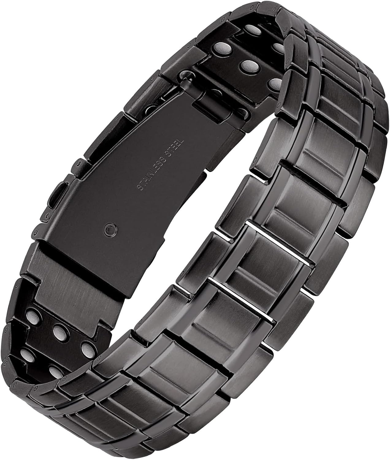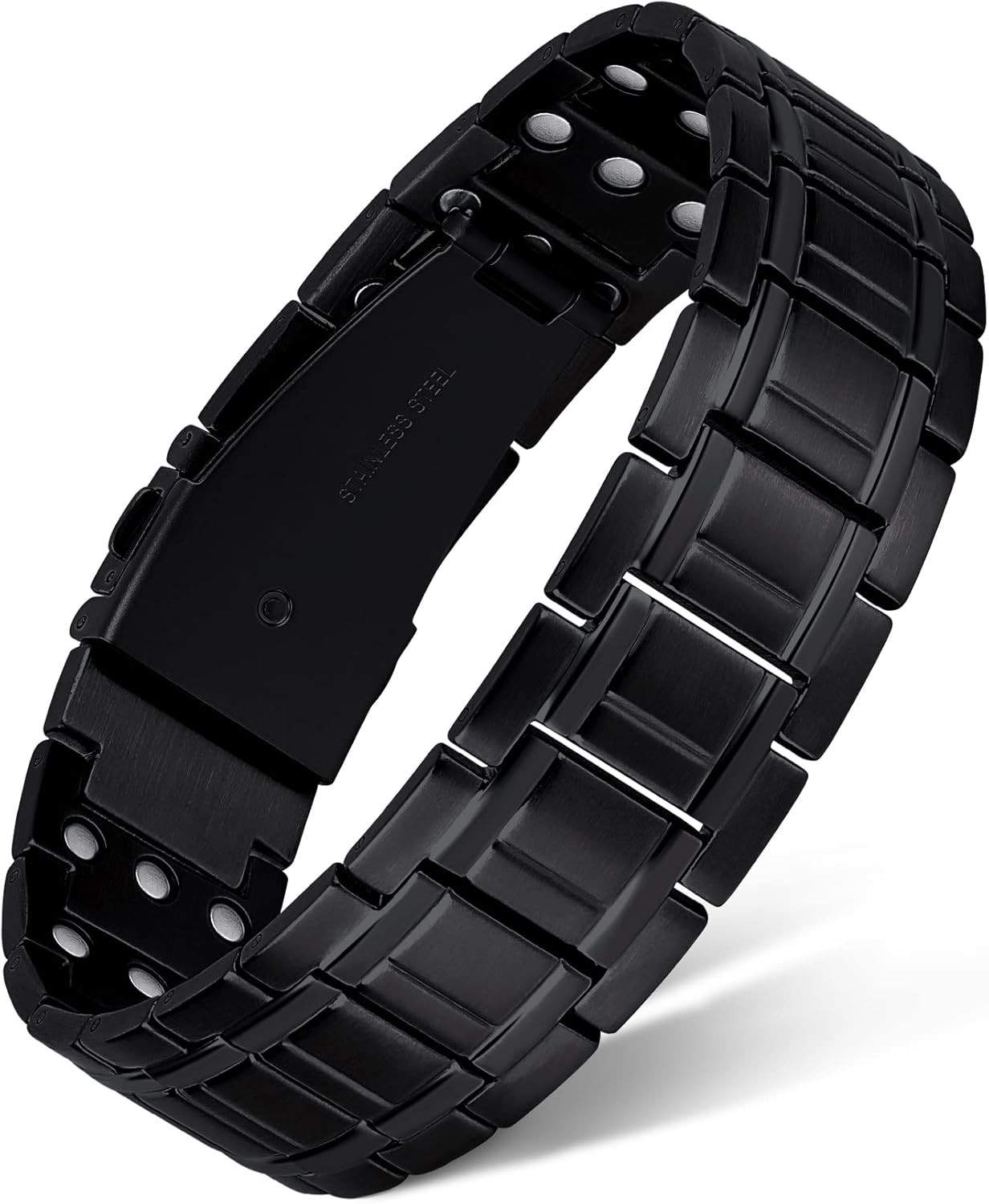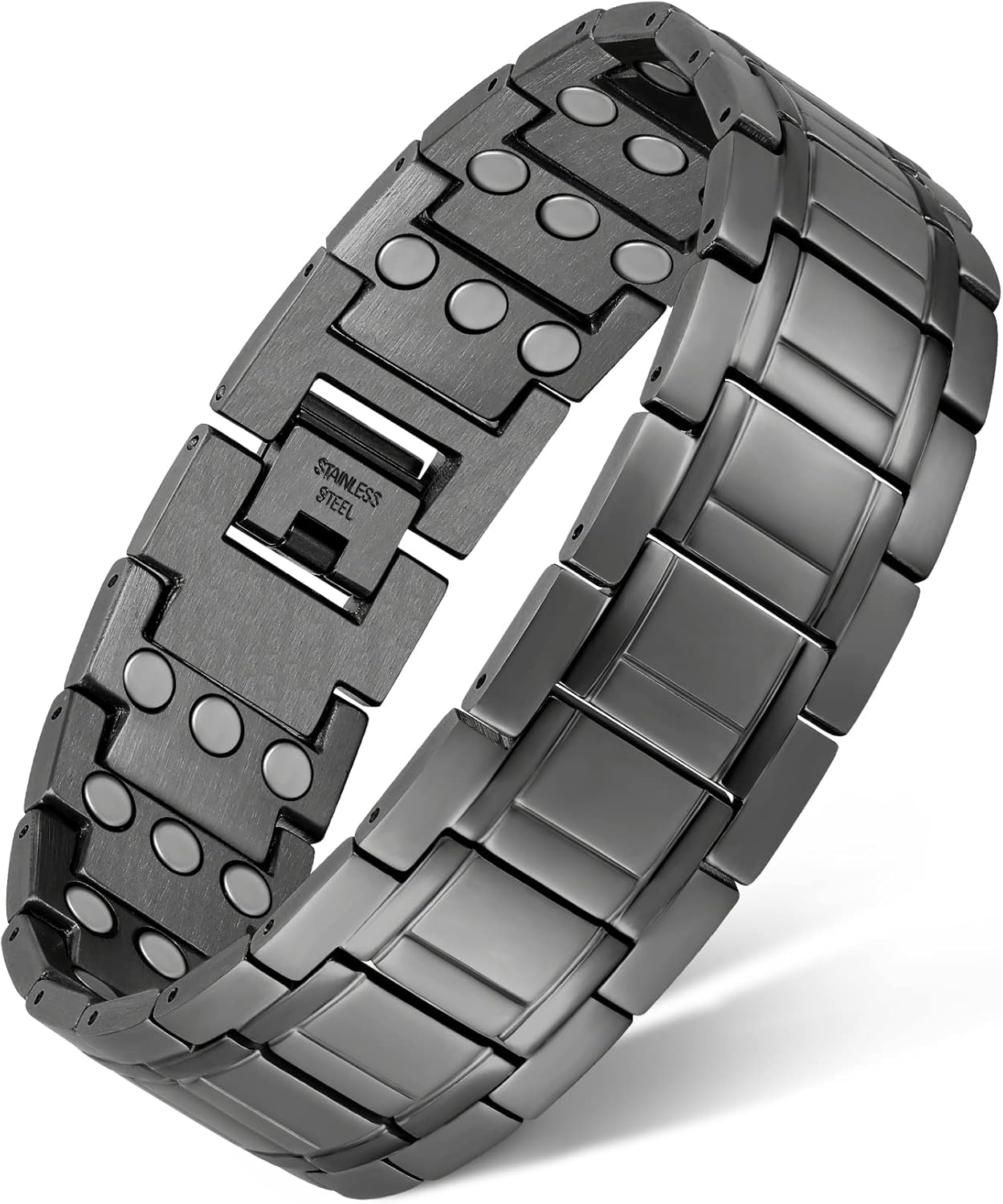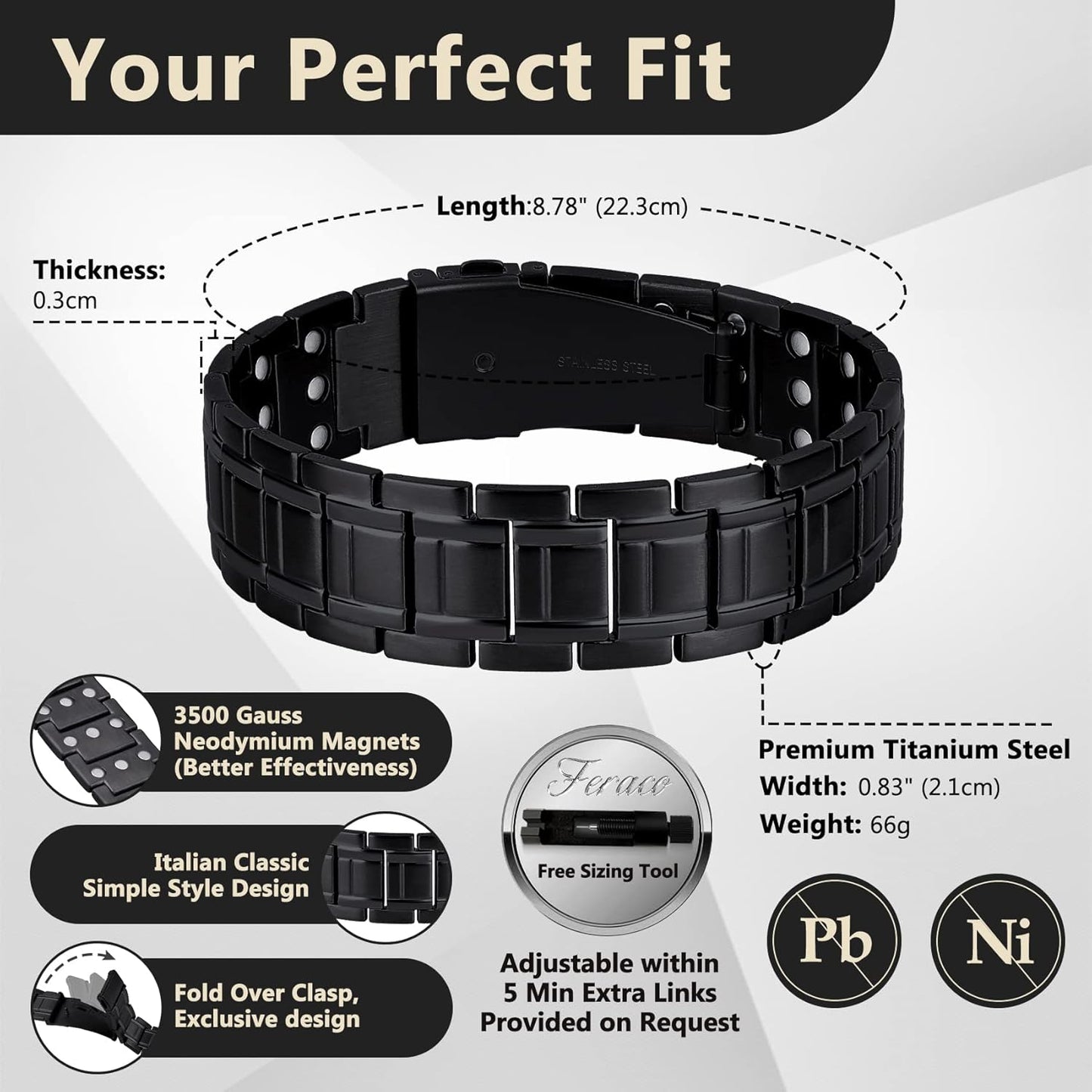 Feraco Magnetic Bracelets for Men, Titanium Steel Bracelets with 3X Ultra Strenth Neodymium Magnets, Adjustable Health Gift with Sizing Tool