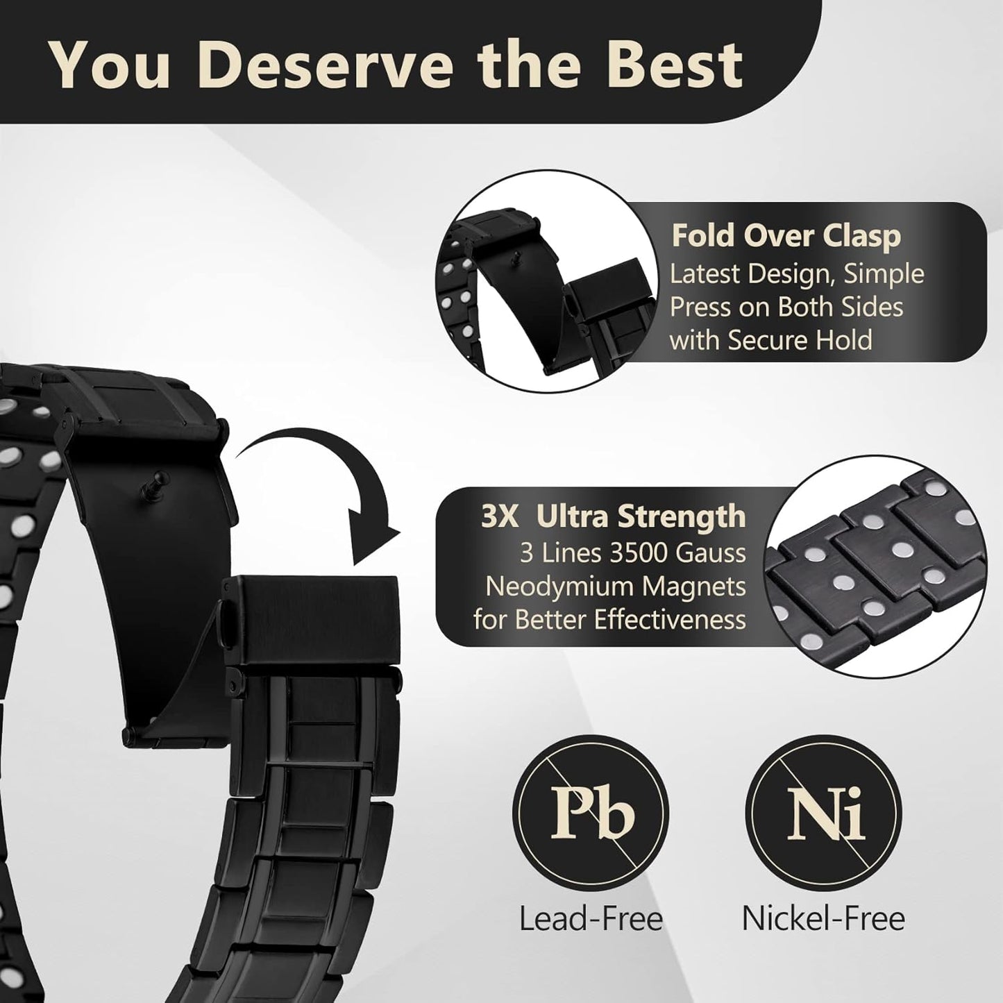 3 Rows Magnets: The magnetic bracelet for men is embedded with 3500 gauss magnets for maximum experience.