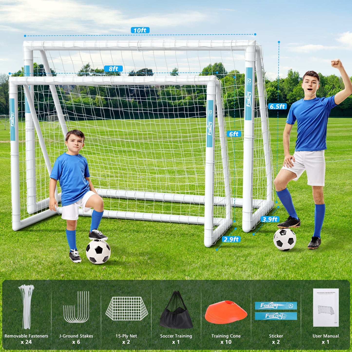 GIKPAL 10x6.5FT Soccer Goal for Backyard, Durable Weatherproof UPVC with Soccer Training Gear & 2 Nets, Perfect for Youth and Adult Practice