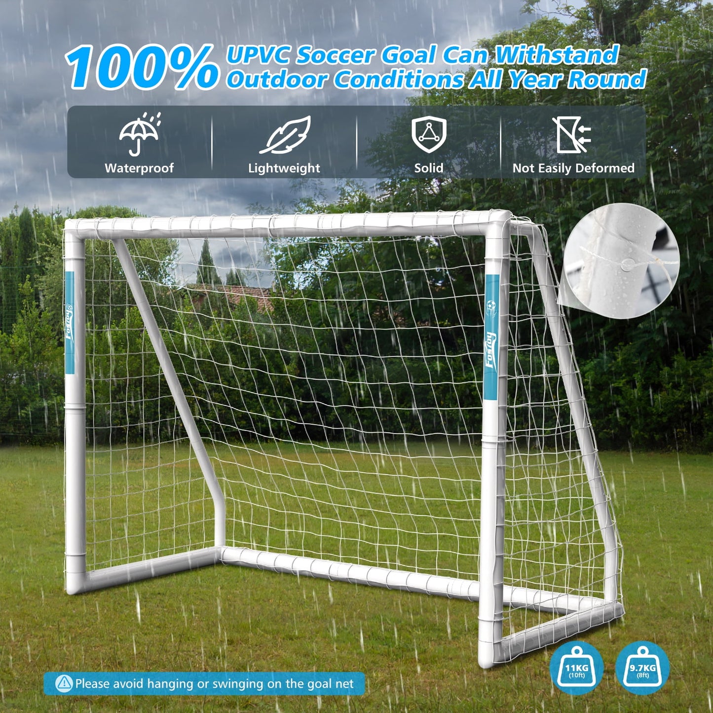 - High-Quality Materials: Crafted with a robust 68 mm thick UPVC frame and a durable, tear-resistant 15-ply net, this soccer goal is designed to withstand intense play and harsh weather conditions. The materials used ensure long-lasting performance, making it a reliable choice for frequent use.