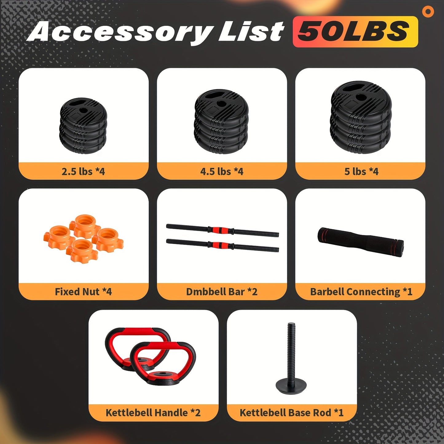 Home Fitness Equipment Adjustable Barbell Kettlebell Combo Set, 20/ 30/ 70/ 90 Lb Free Weight Set with Upgraded Nuts, 4-in-1 Weight Set, Can Be Used As Kettlebell, Barbell, Push-up Stand, Home Fitness Workout, Suitable for Men/ female