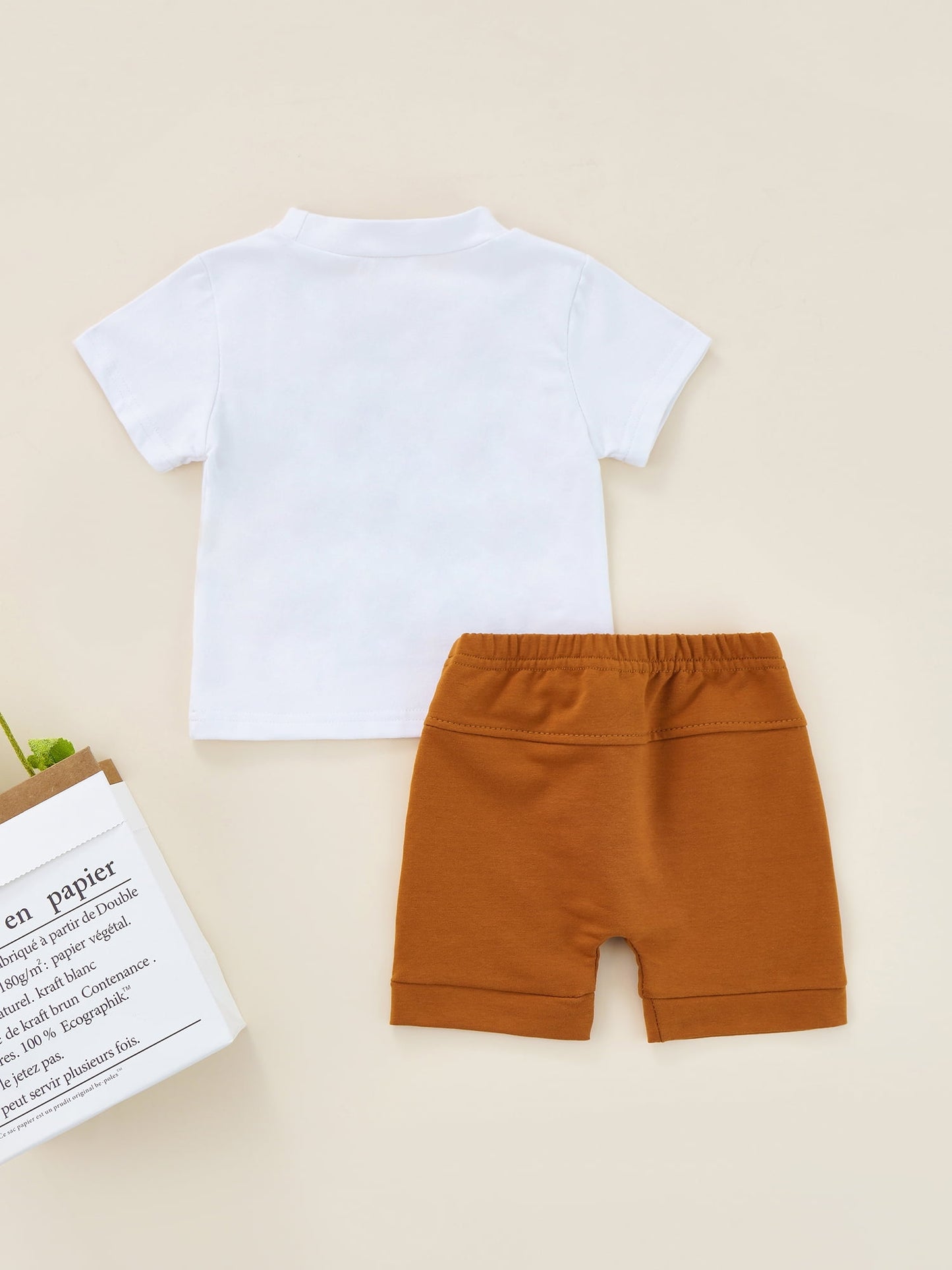 - Design: With letter print, short sleeve, round neck tops and pocket, elastic waist shorts design, the baby boy two-piece suit can bring much beauty.