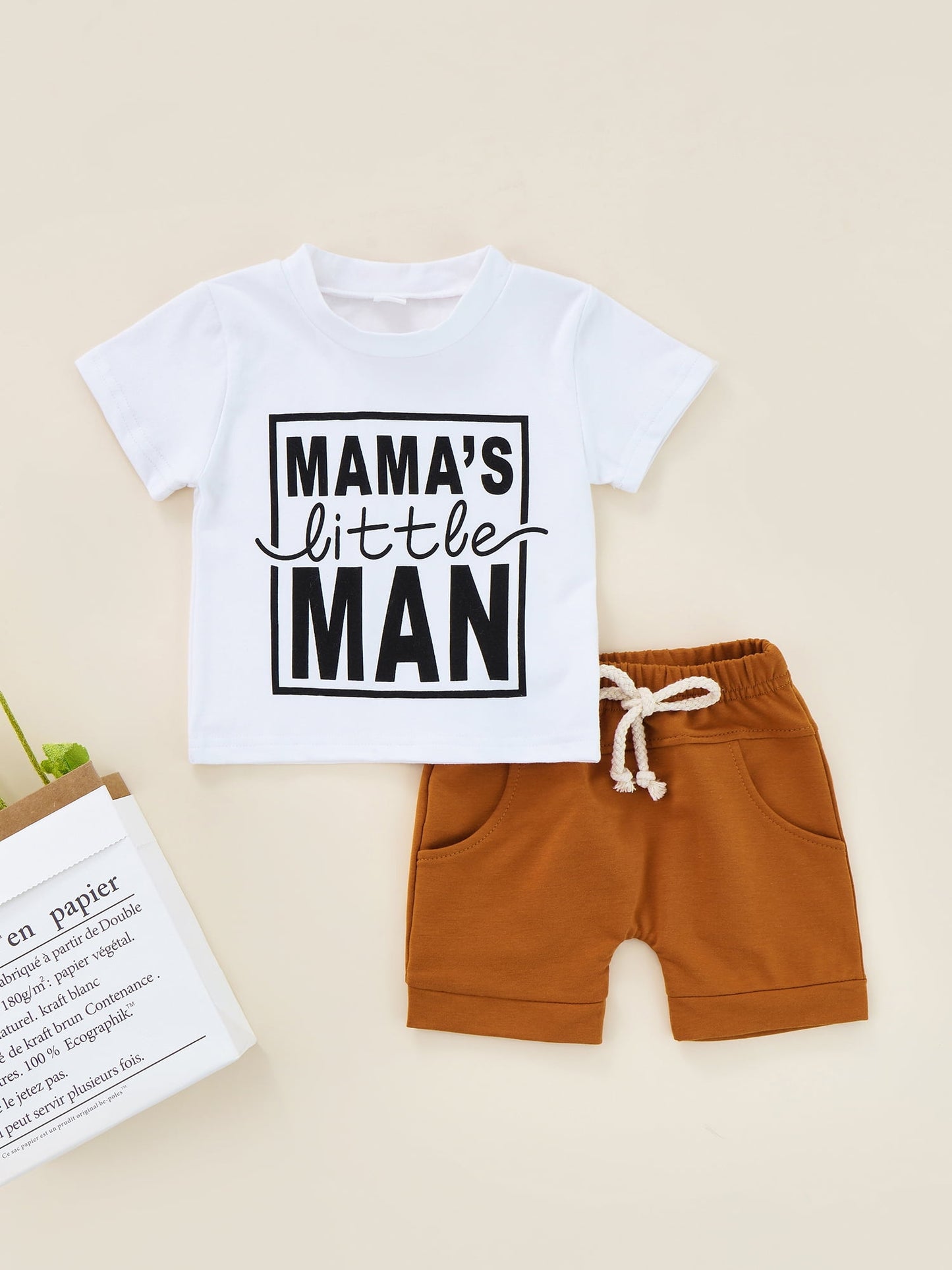Kiapeise Baby Boy Summer Clothes Short Sleeve MAMA'S LITTLE MAN Print T-shirt Tops Shorts 3 6 9 12 18 Months Boy Casual Outfits