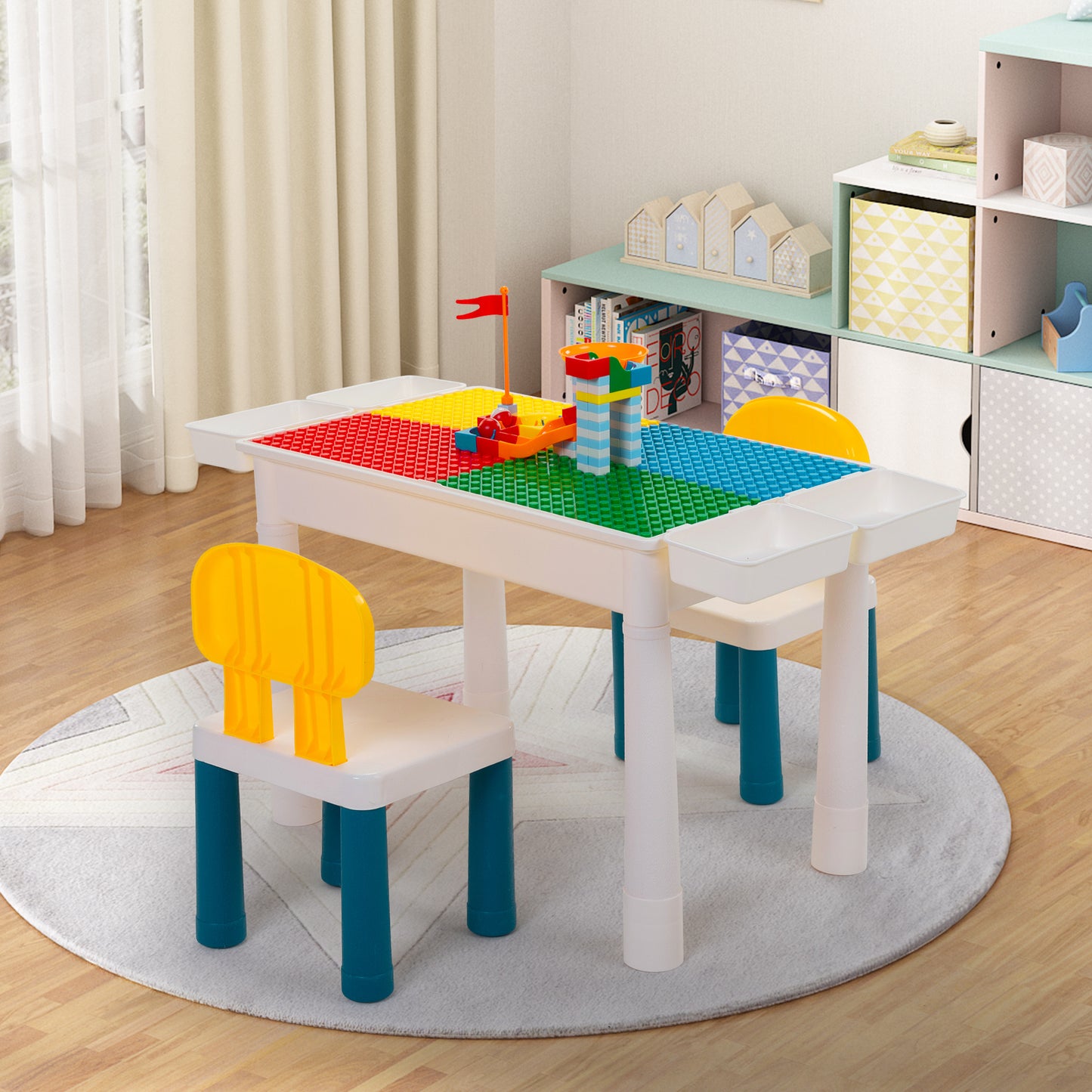 Kid Activity Table Set with 2 Chairs and 100Pcs Large Size Blocks, Compatible with Classic Blocks, Toddler Water Sand Table, Building Block Table for Boys Girls