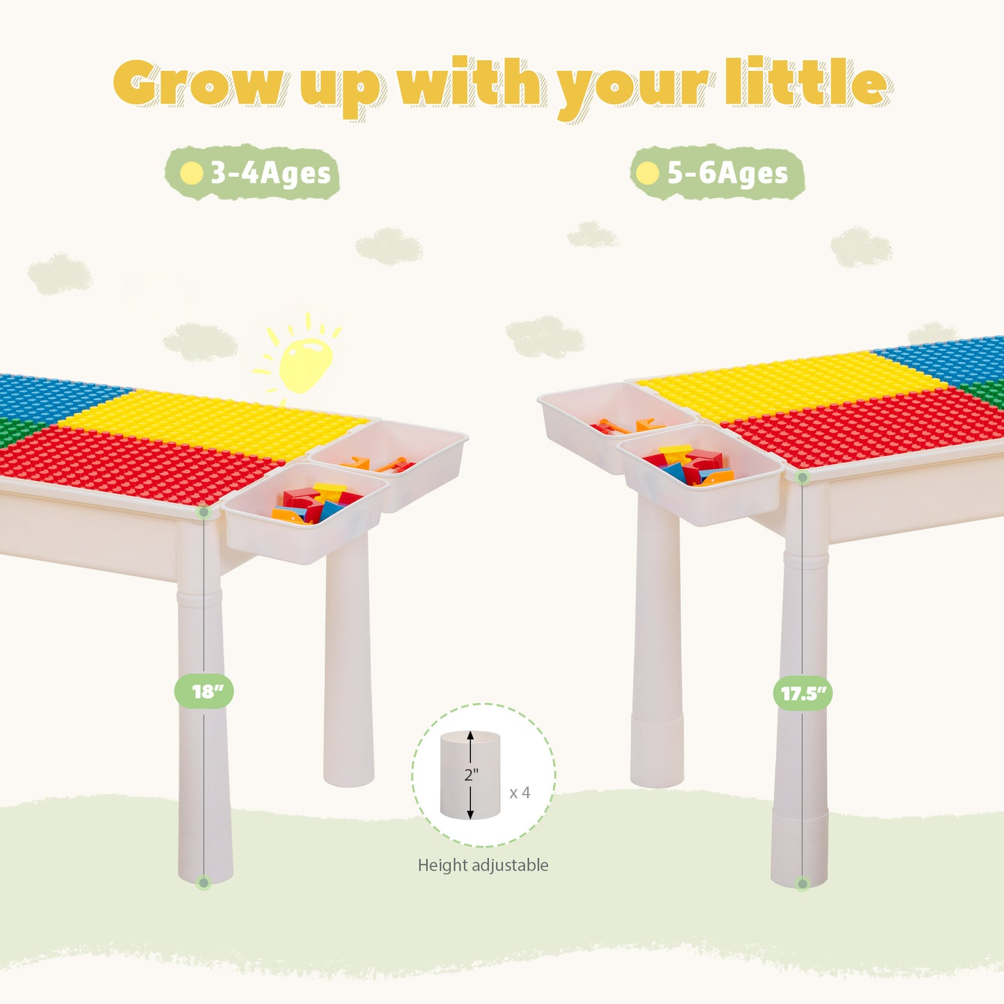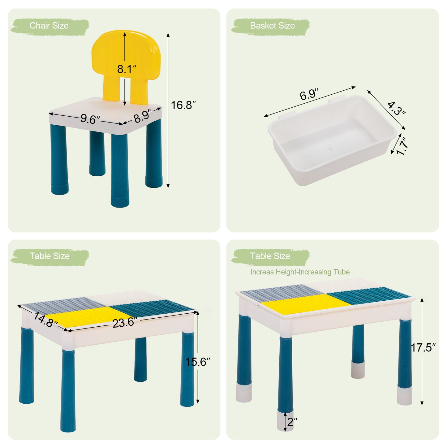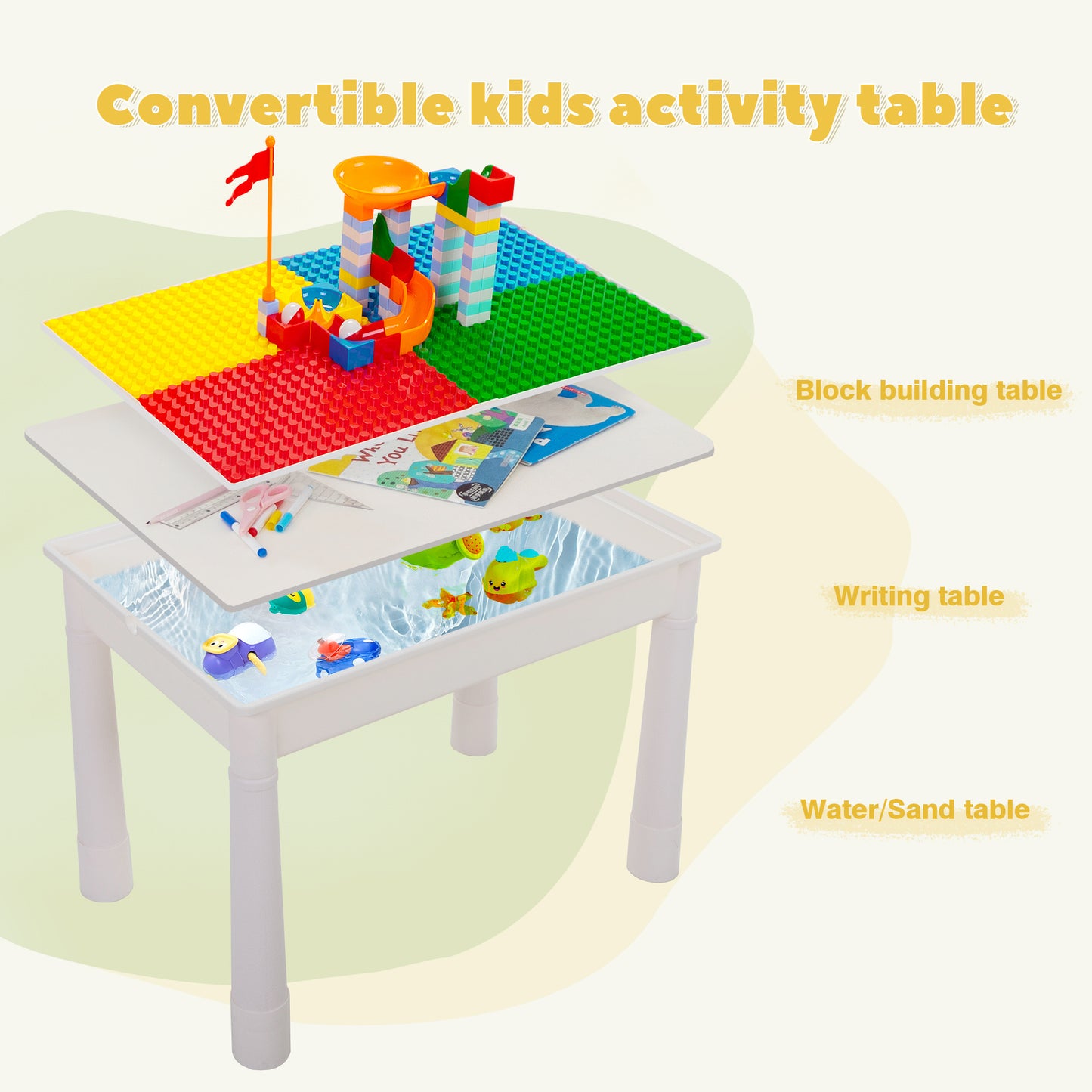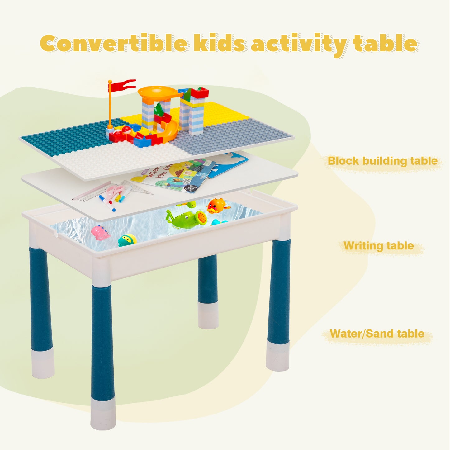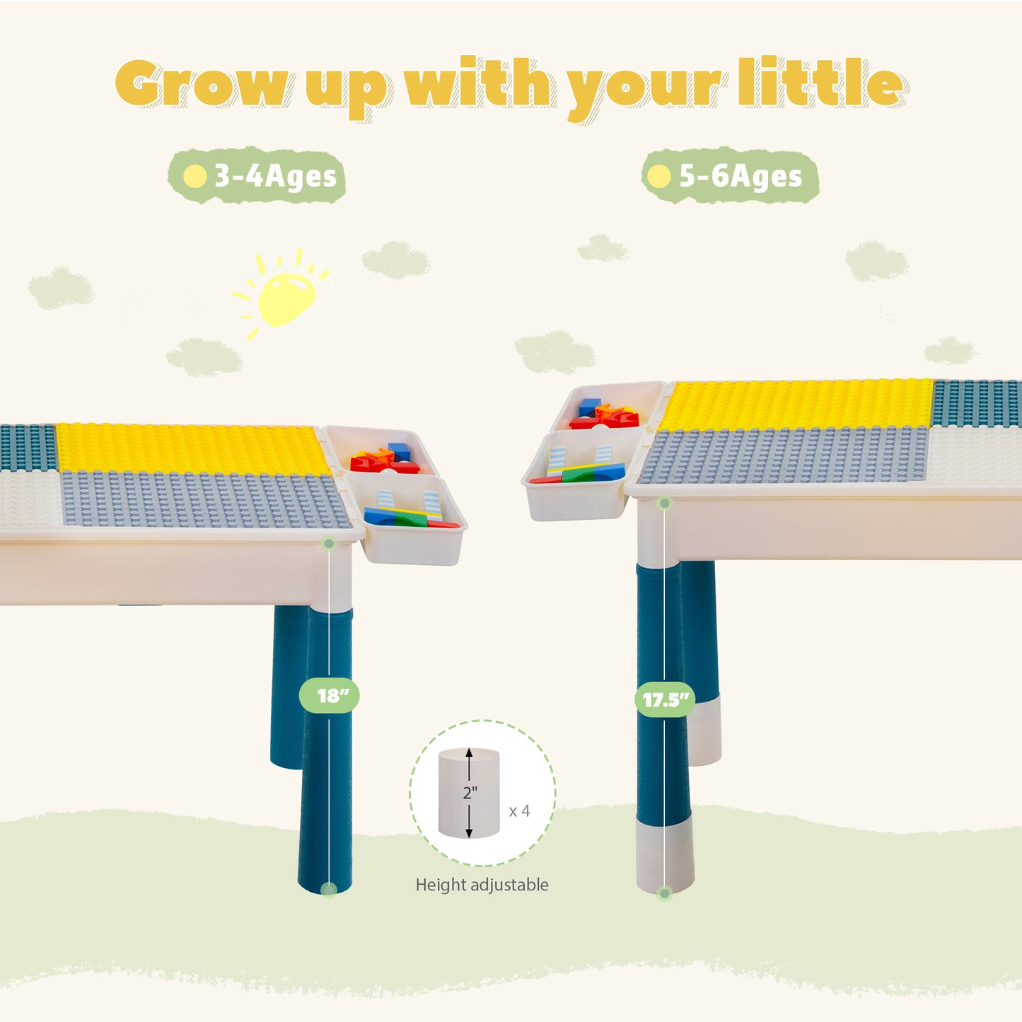 - 【7-in-1 Activity Table】 On the one hand, your little one could freely build blocks on the surface of our play table. On the other hand, after flipped up, it also serves as a dining table, writing table craft table and drawing table with its flat tabletop. Besides, the large space under the table can also be used to play with water or sand or store items.