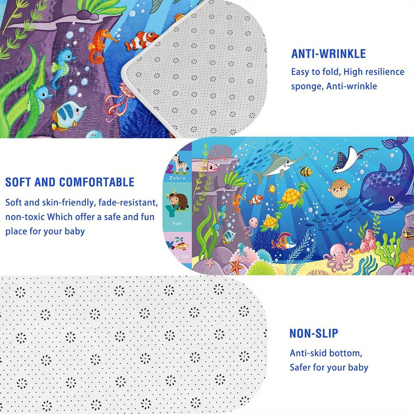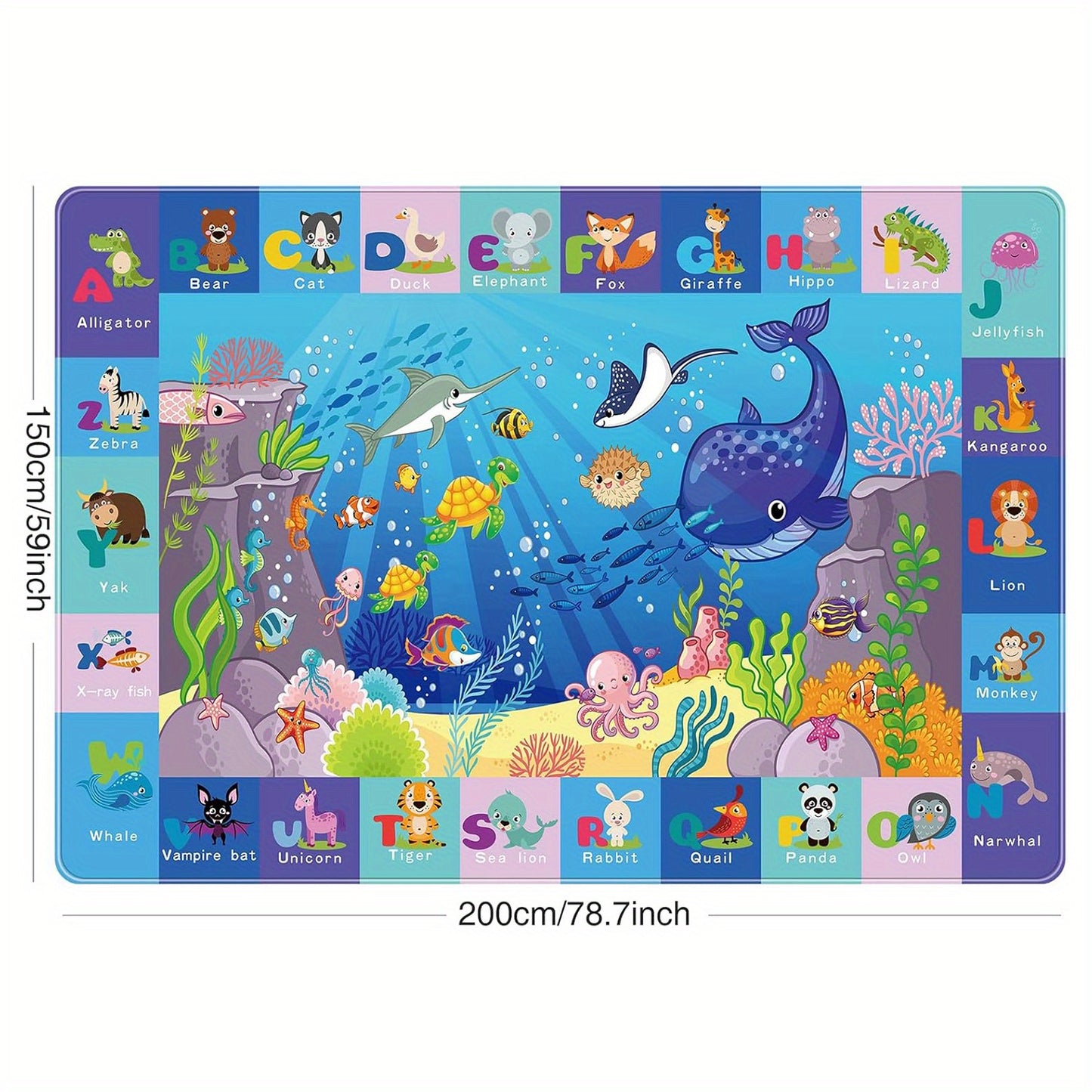 Kids Play Rug, Animals Print Mat for Floor, Kids Rug for Playroom, ABC Educational Rug, Non-Toxic Soft Crawling Mat, Tummy Time Mat, Nursery Rugs