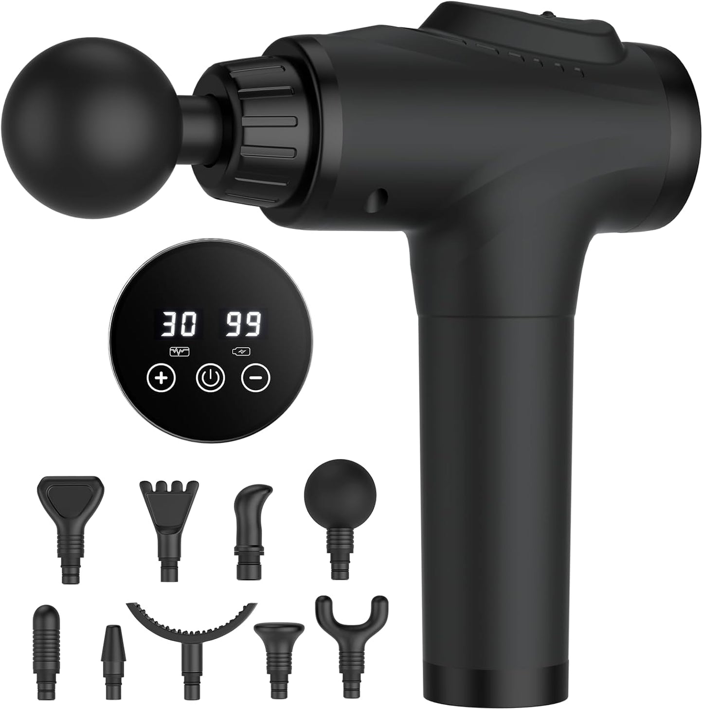 Personalize your massage experience: The 30-speed levels and 9 massage heads make our muscle massager gun perfect for professional athletes, recreational gym-goers, and everyone in between. Treat sensitive areas or experience the full power of our massage gun.