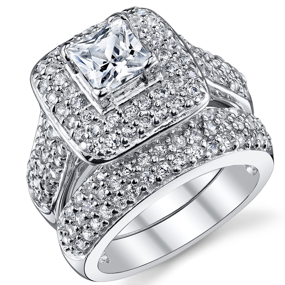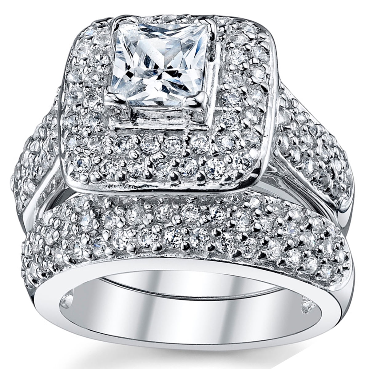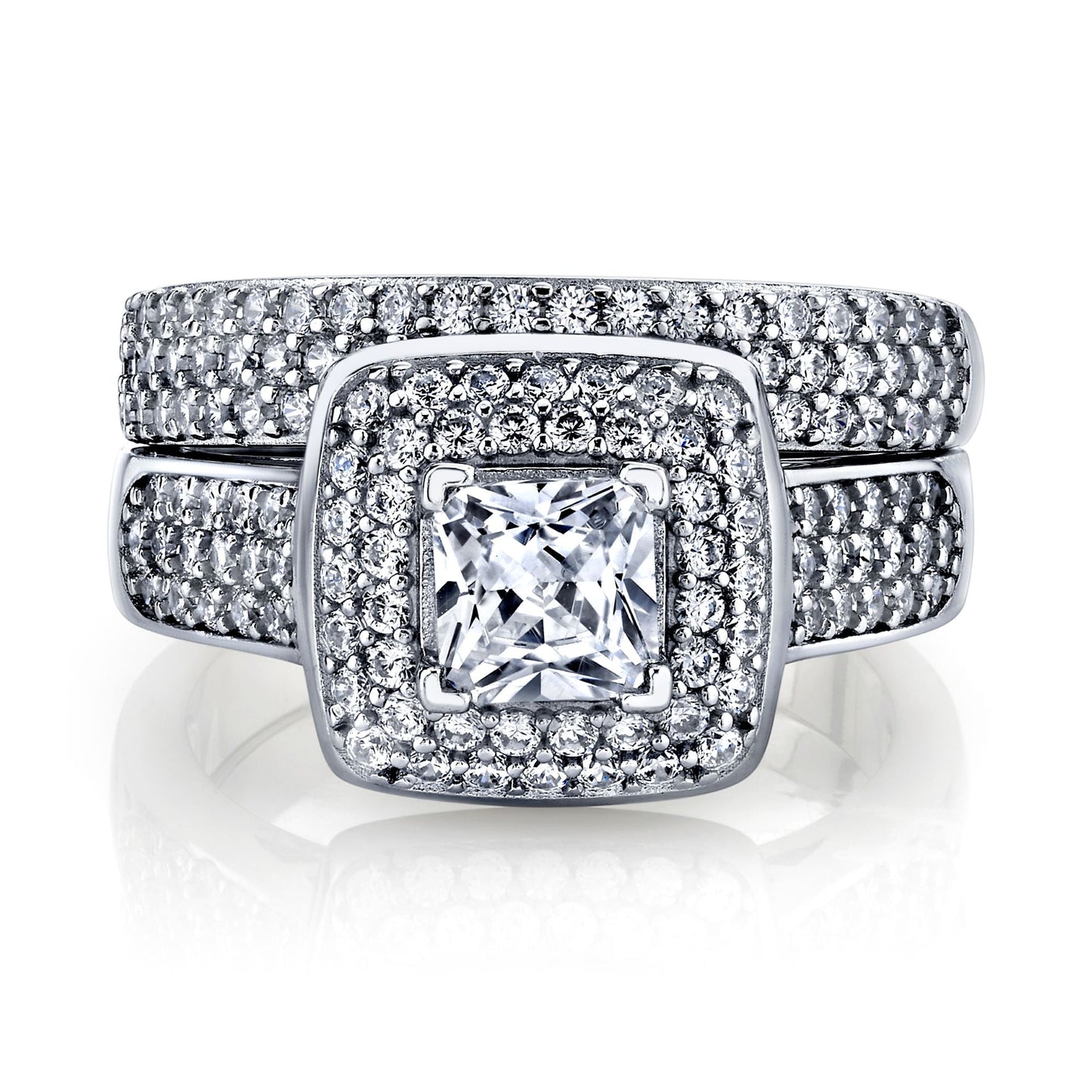 Metal Masters Womens 1Ct Princess Cut Cubic Zirconia Sterling Silver 925 Wedding Engagement Ring Set 6