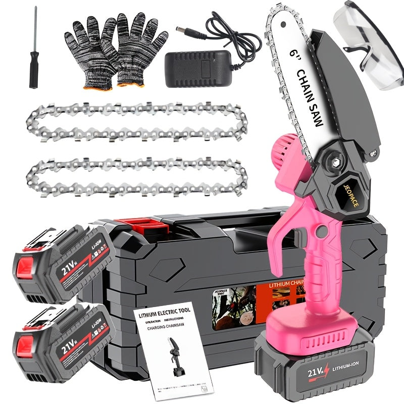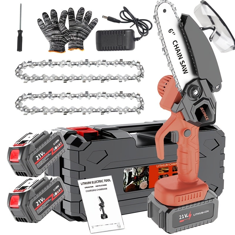 Mini Cordless Chainsaw, 6 Inch Handheld Chainsaw, Splash Protection and Safety Lock, 2 Batteries and 2 Chains, Suitable for Trees, Yard, Home and Garden,valentines day gift