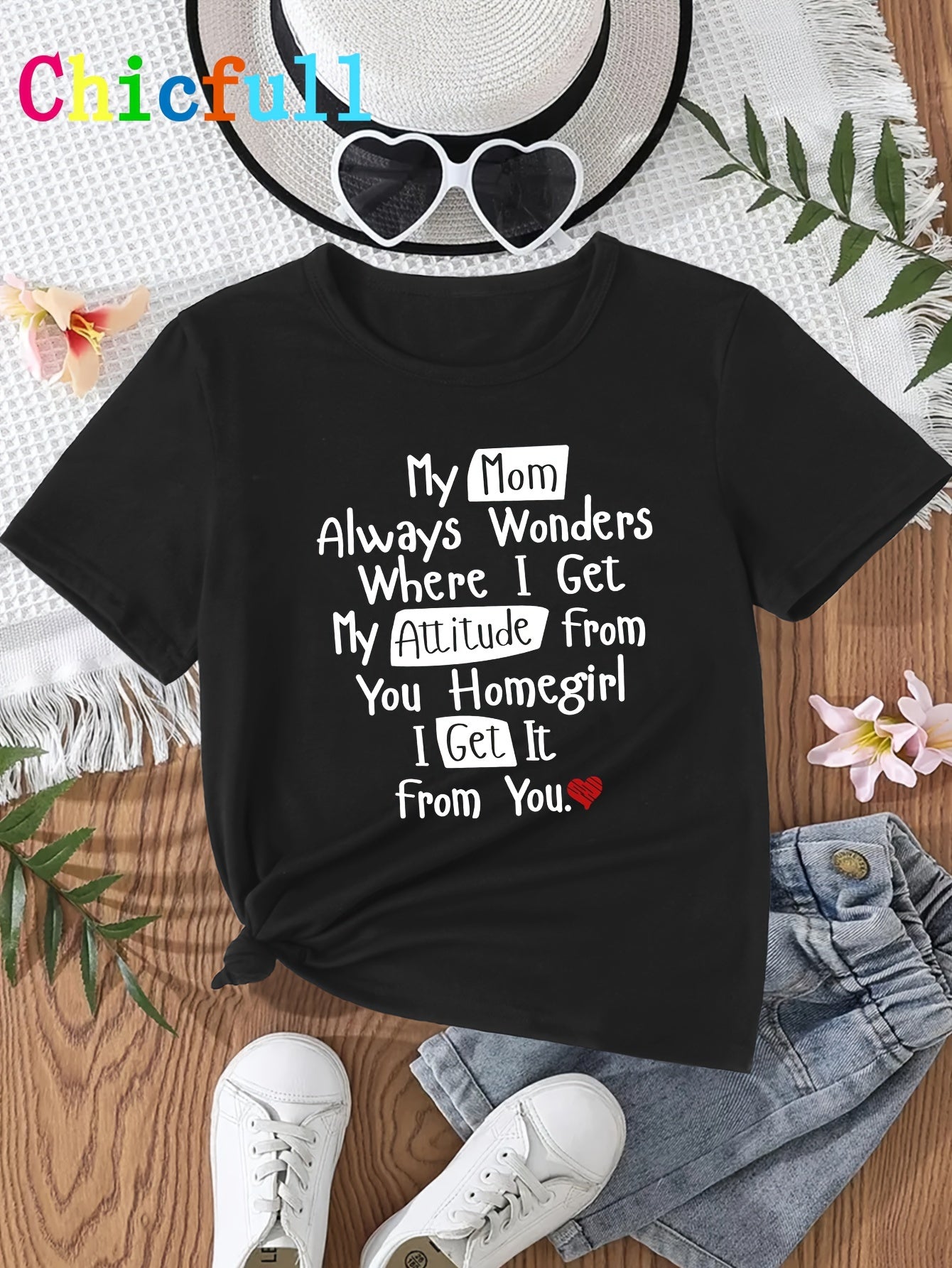 MY MOM ALWAYS WONDERS WHERE I GET MY ATTITUDE FROM Print Short Sleeve T-shirt Girls Comfy Tees Summer Clothes