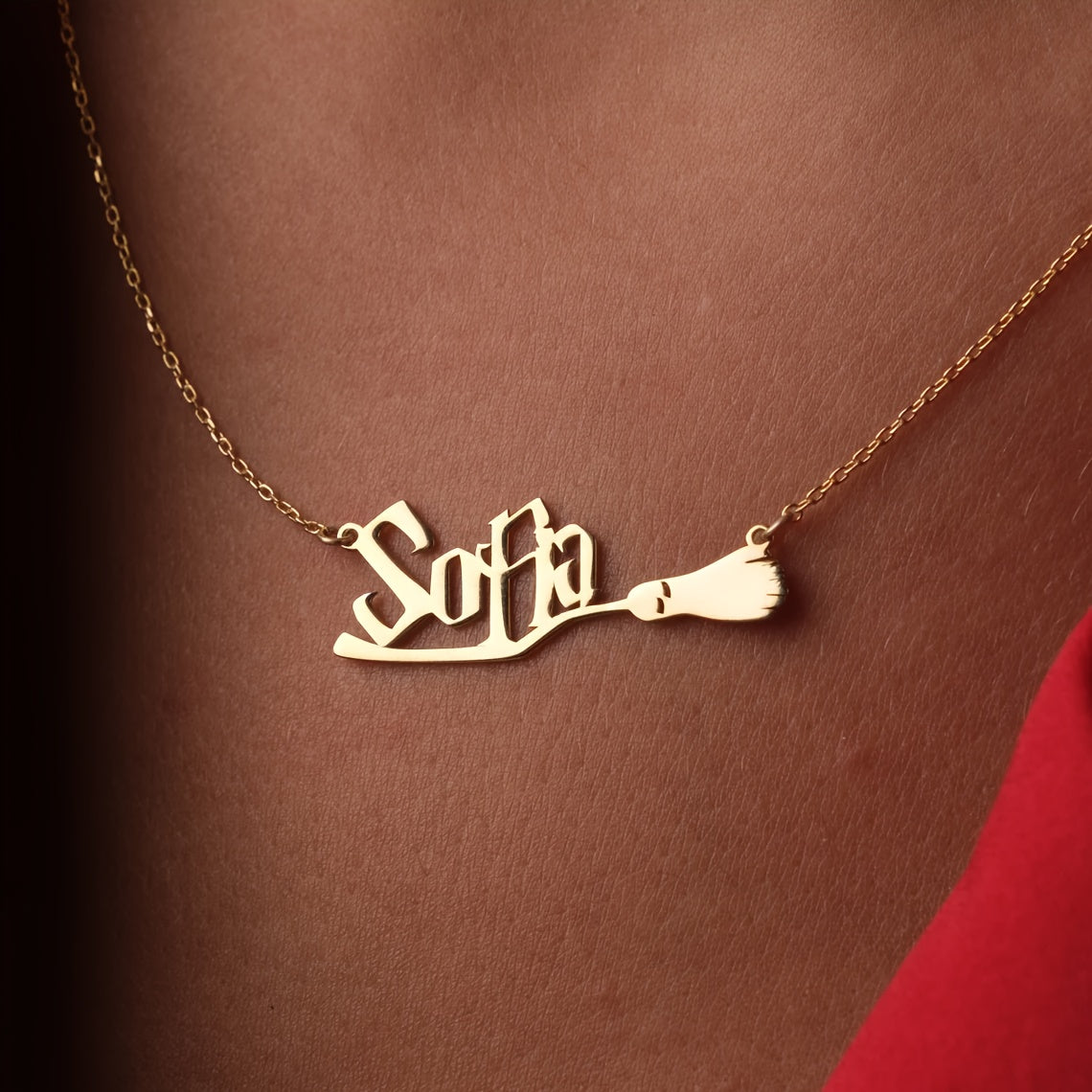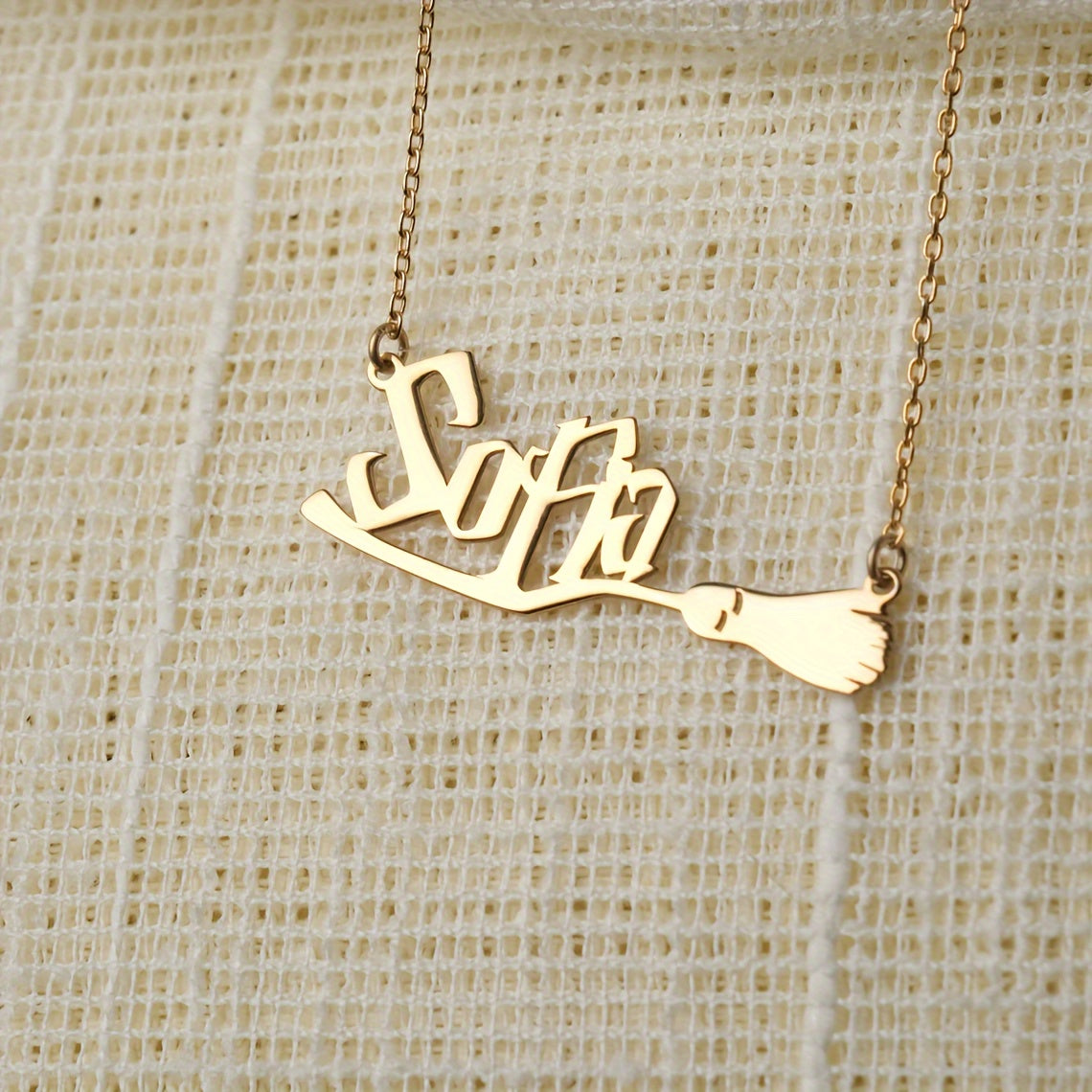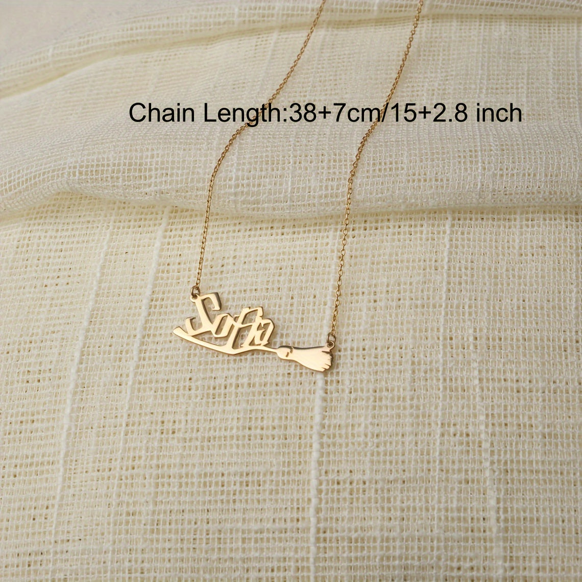 Personalized Magic Broom Name Necklace - Stainless Steel Witch & Wizard Pendant, Custom English Lettering, Trendy Women's Jewelry