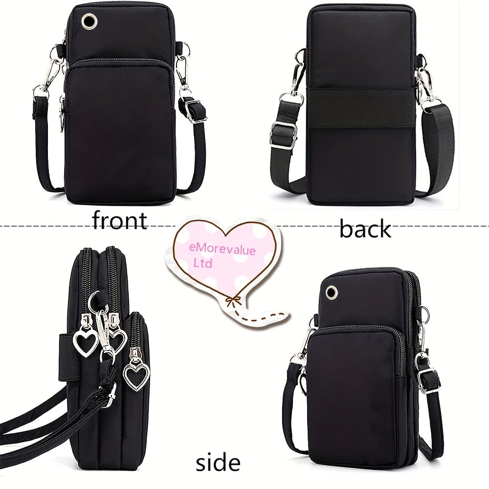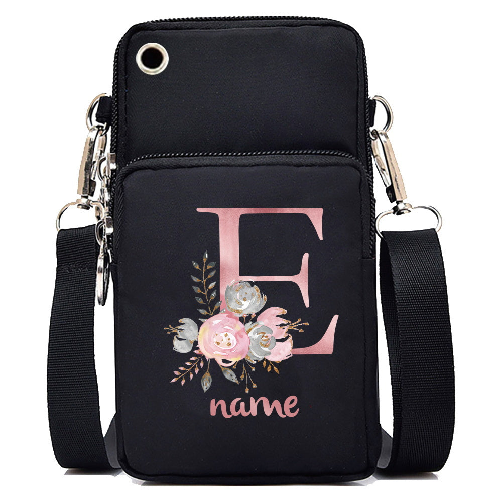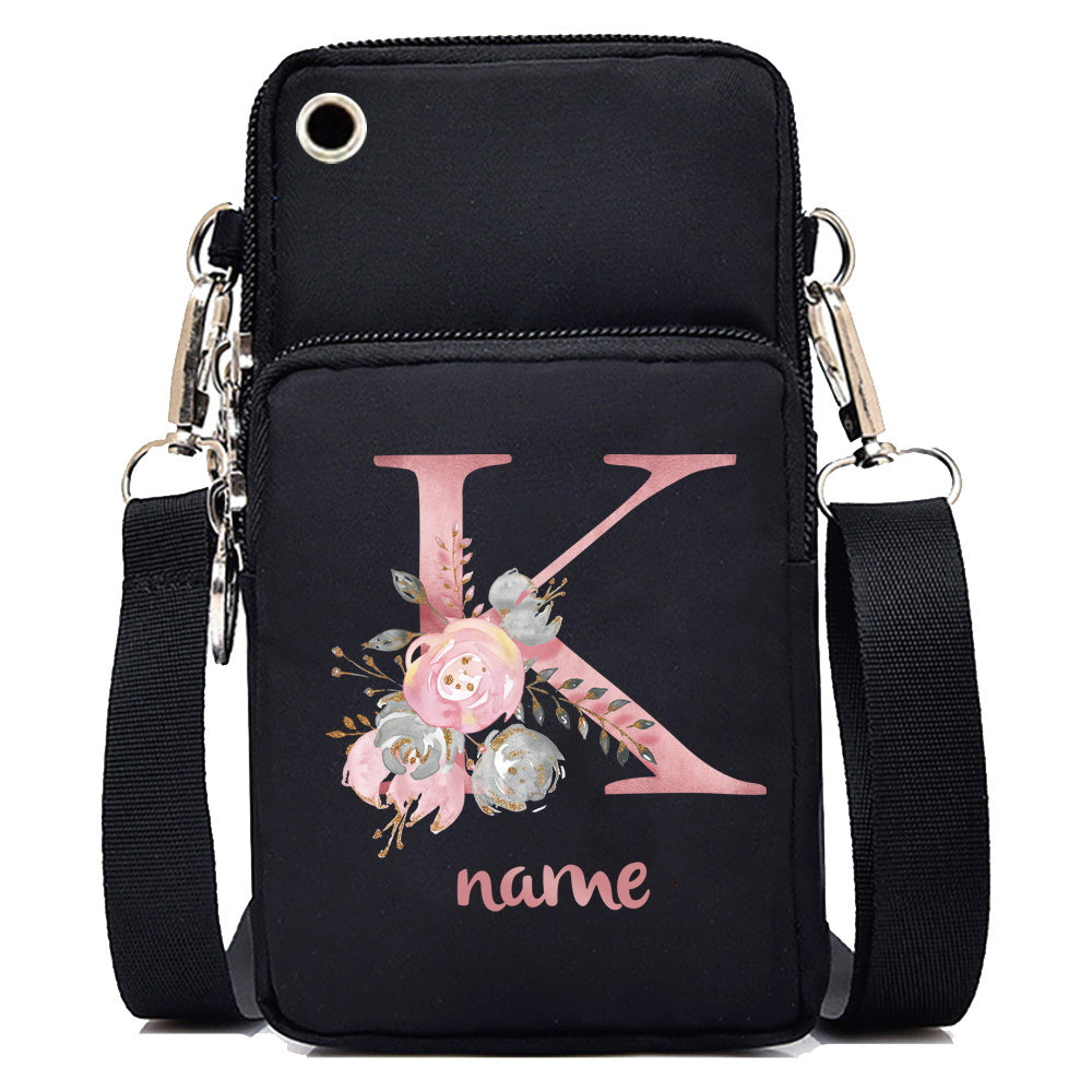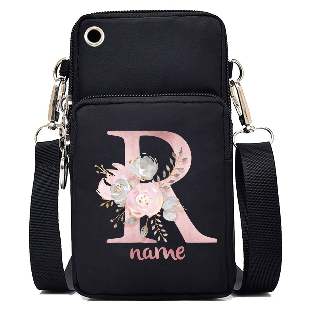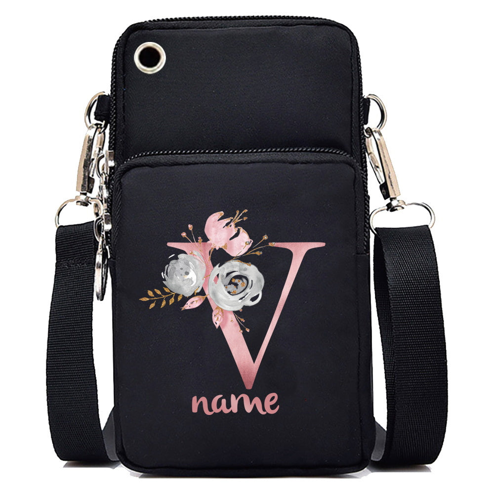 Personalized Nylon Crossbody Bag for Women, Custom Name, Black, Waterproof Wristlet Shoulder Coin Purse, Mobile Phone Pouch for iPhone Samsung Xiaomi, Unlined, Hand Washable
