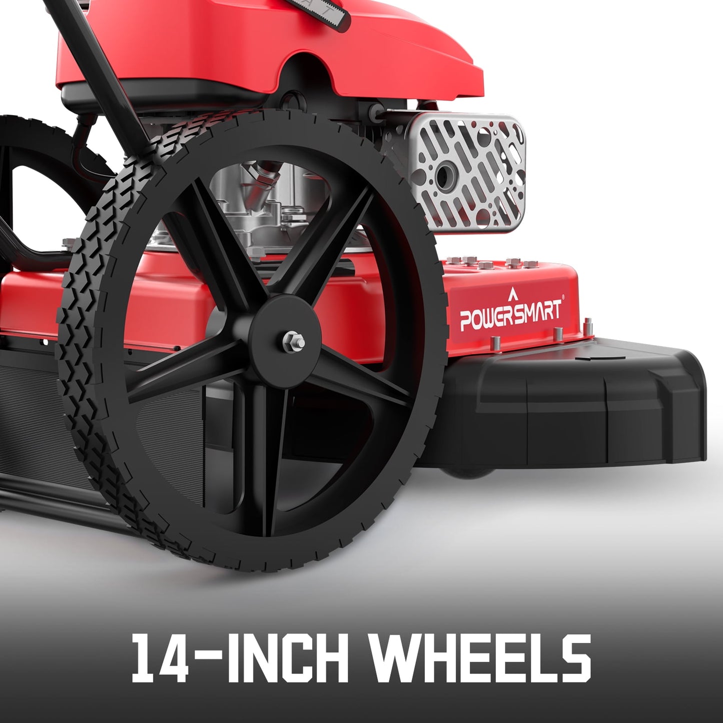 Easy to Move: 14-inch rubber wheels make it easy to move across tough or uneven ground.