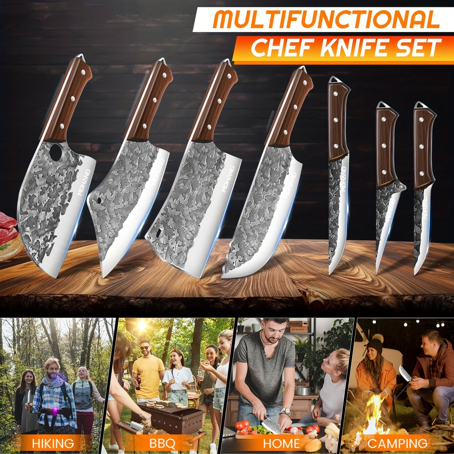 Professional 14pcs Kitchen Chef Knife Set Includes Roll Bag 3-7 Inch, Butcher, Cleaver, Boning, Utility, Splitting Knives for Meat Cutting Fruit Vegetable, High Carbon Stainless Steel Ultra Sharp, with Ergonomic Wood Handle, Cooking Tools