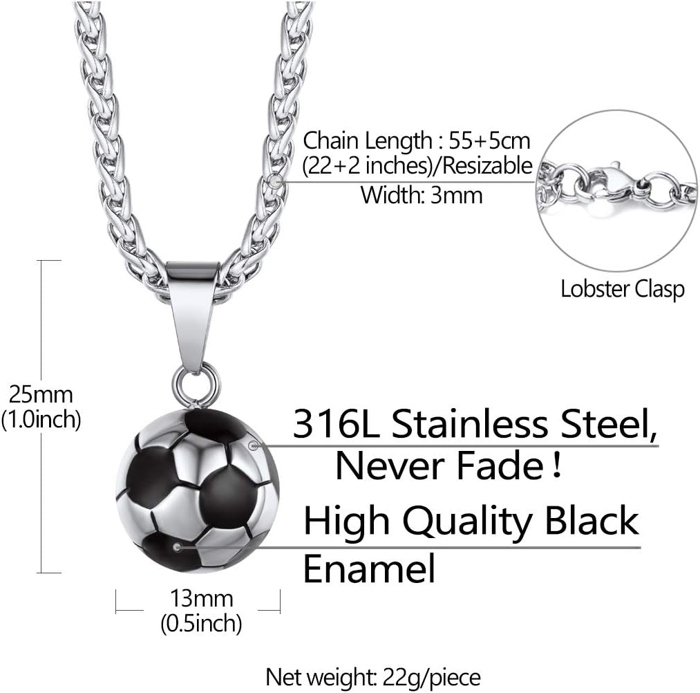 Football soccer pendant necklace for men,football loversHip hop sport theme jewelry gift for soccer team member,athletes, stainless steel/18K gold plated color available