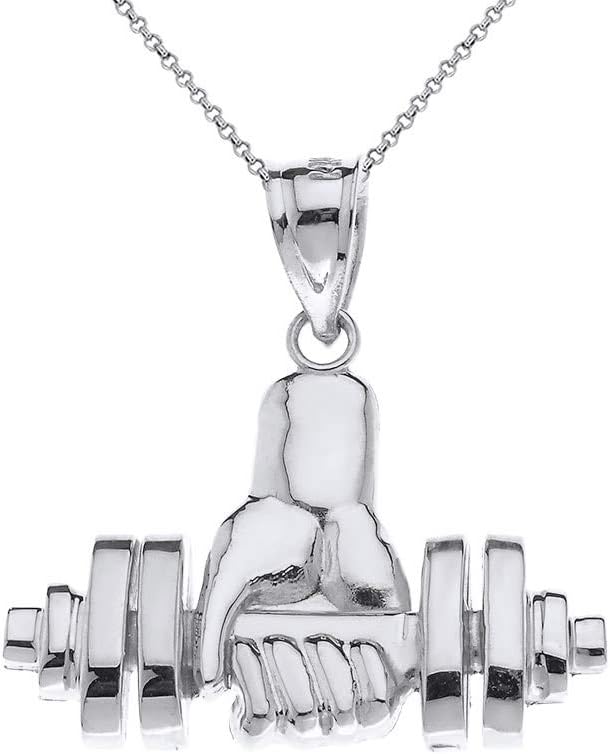 [ ♦ PERFECT GIFT IDEA ♦ ] This sterling silver Weightlifting Dumbell Barbell Fitness Gym Trainer Charm pendant necklace is a perfect addition to your jewelry collection and can be a wonderful gift for women and men for any occasion.