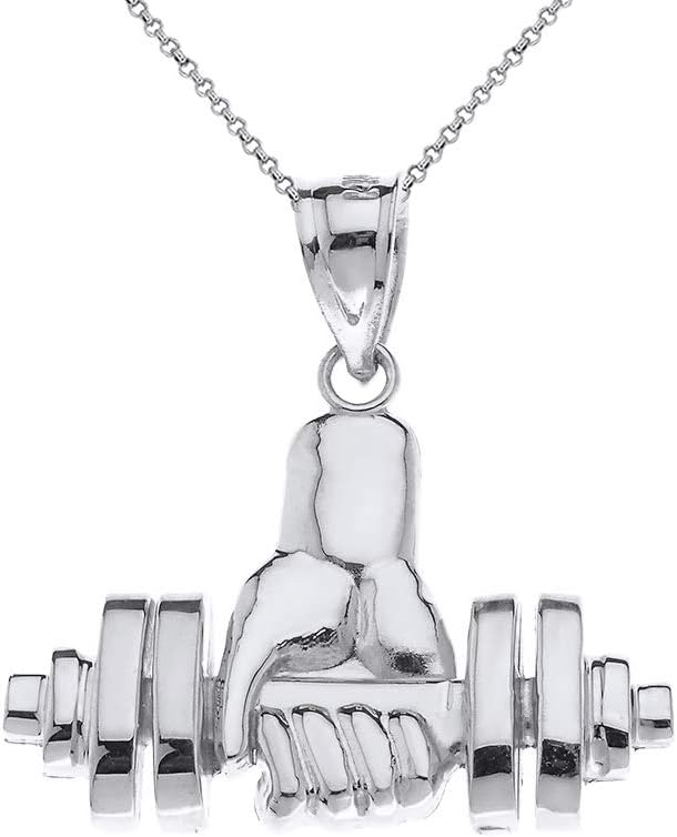 Sterling Silver Weightlifting Dumbell Barbell Fitness Gym Trainer Charm Pendant Necklace