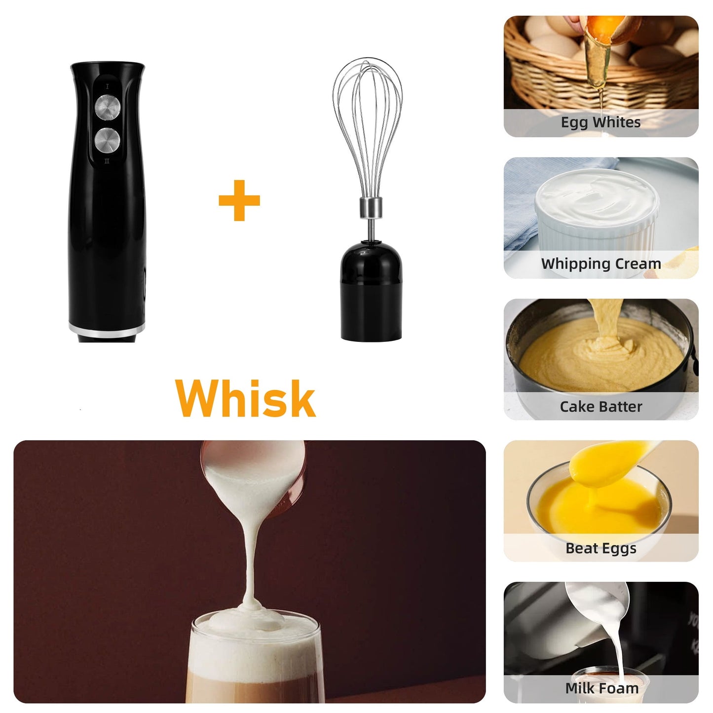 - Convenient Detachable Design: Switching between different attachments has never been easier with our snap on/snap off feature. Effortlessly switch from blending to chopping or whisking, and then easily clean up afterwards with the eject button for quick attachment removal.