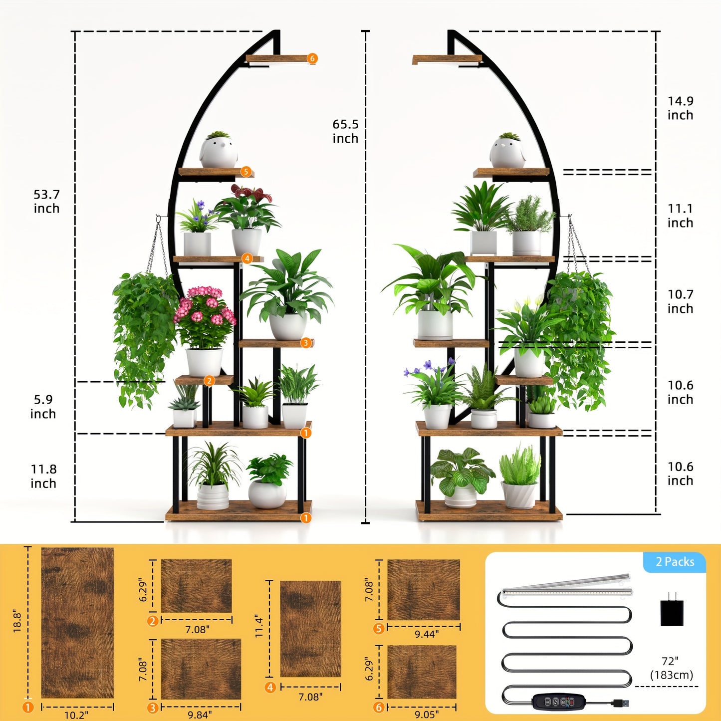 Tall Plant Stand Indoor with Grow Light, 7 Tiered Metal for Plants Multiple, Large Holder Display Shelf, Half-Moon Shape Rack Living Room, Patio, Balcony