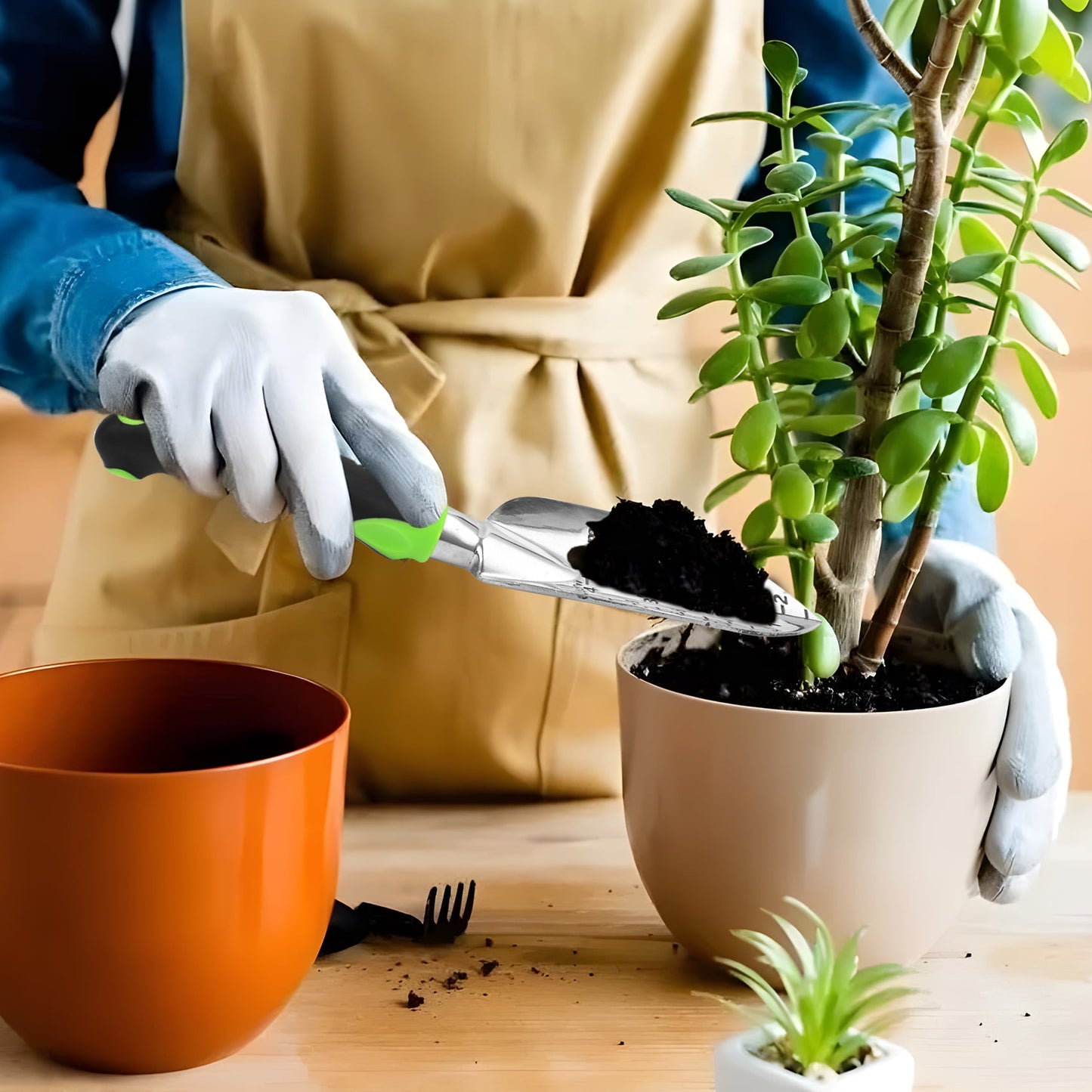 The transplanting trowels have length grading marks including centimeters and inches, allowing you to see how deep a hole is so you can plant seeds perfectly.