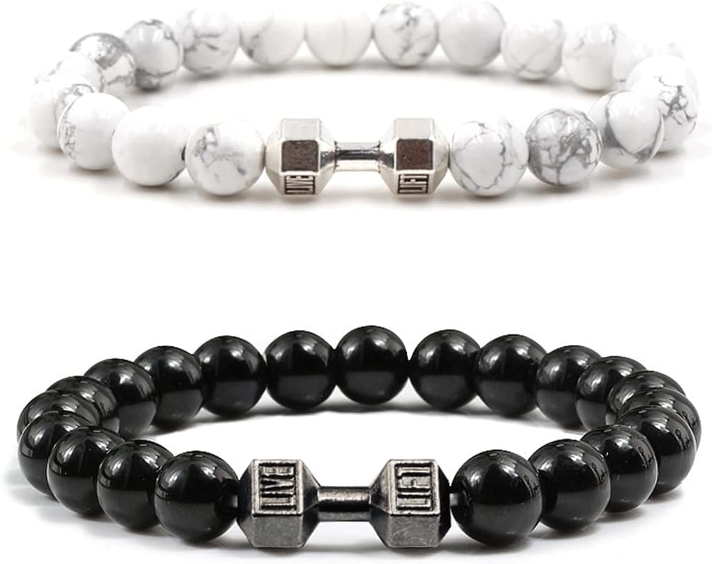 DUMBBELL BRACELET for MEN WOMEN:Dumbbell bracelet designed to relieve pressure,meditation,yoga,etc.Boost your mood and confidence with the power of natural stones-this traintough dumbbell bracelet heavy is designed to help you overcome depression and rediscover your passion for life