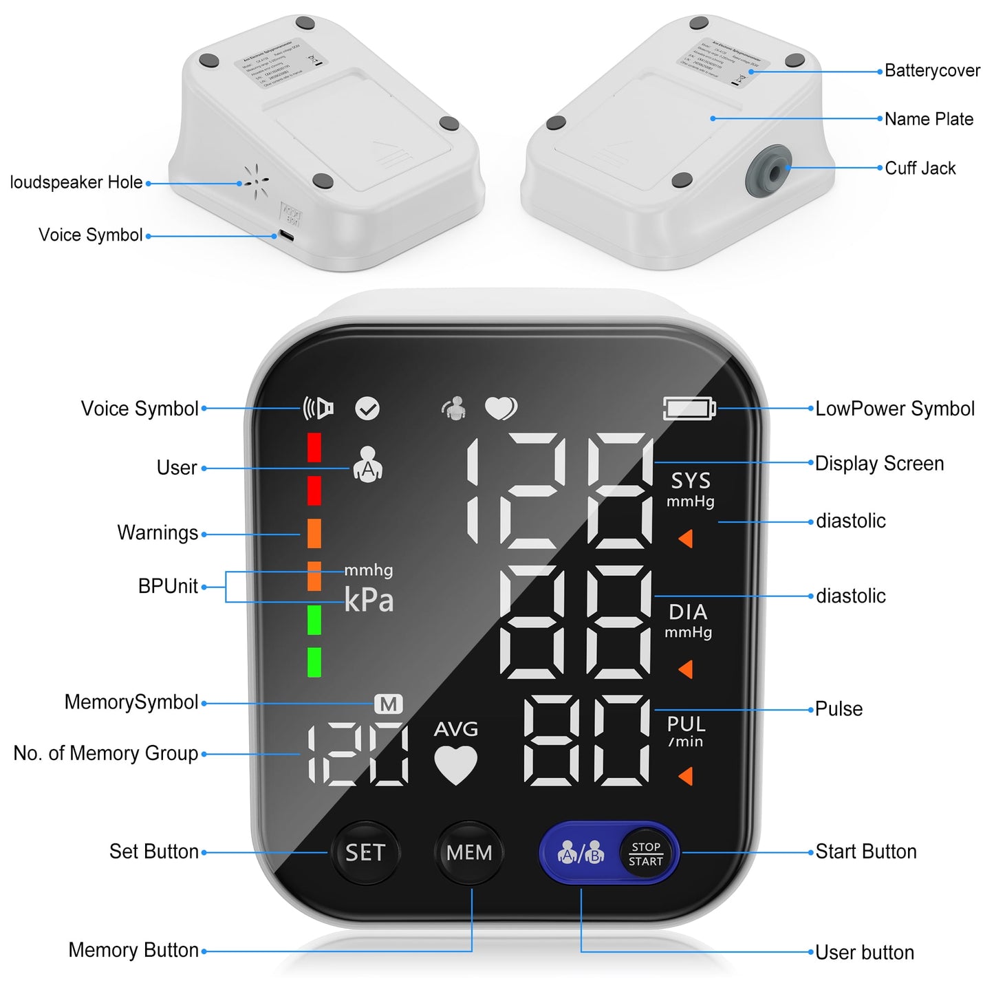 - LED Digital Display: The VIIWII Blood Pressure Monitor features a high-contrast LED screen, making it easy to read readings even in dim lighting. The large, eye-catching numbers and intuitive interface are designed to provide a seamless experience for users of all ages.