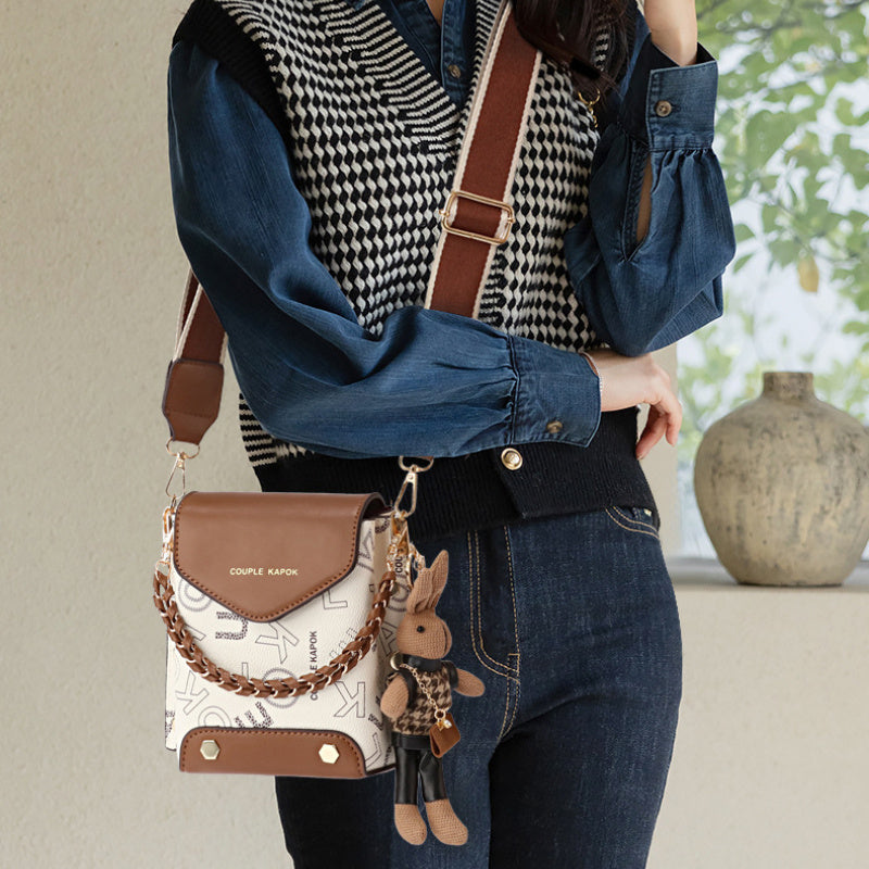 Vintage Designer Women's Mini Crossbody Bag - Elegant with Rivet Details, Magnetic Closure, Brown/Cream, Adjustable Strap, Perfect for Everyday Use, Stylish Accessory | Rivet Detailed Purse | Sophisticated Texture, Small Crossbody Bag