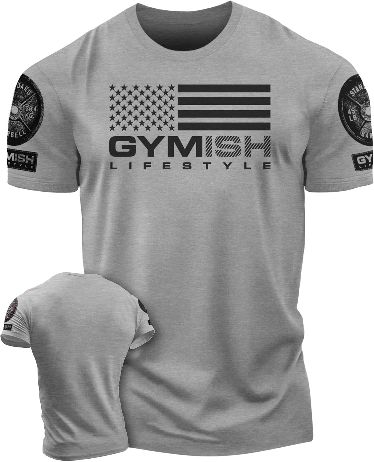 Workout Shirts for Men, Gymish American Flag Gym Shirt, Funny Lifting T-Shirt