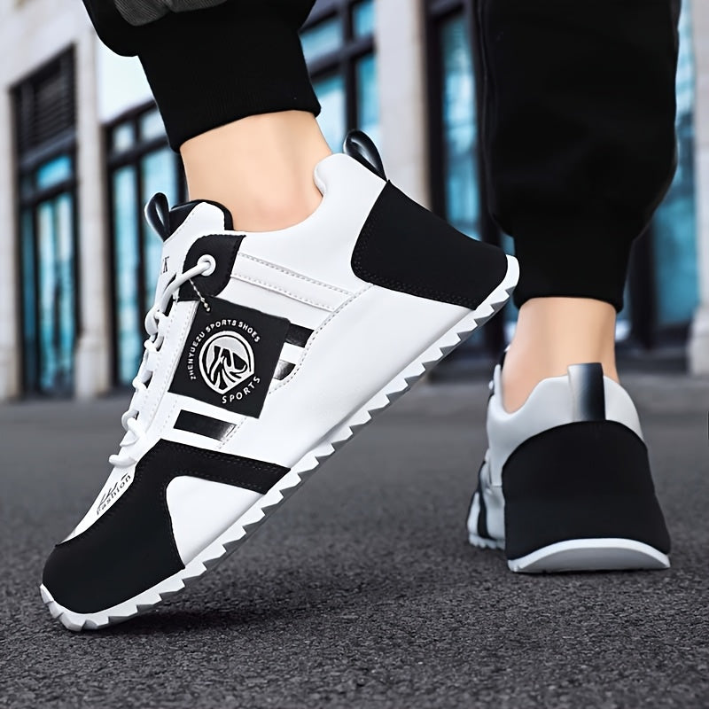 Zhenyuezu Men'S Fashion Sneakers - Black & White, Comfortable Lace-Up with Stylish Logo, Durable Outdoor & Casual Wear, All-Season Footwear, Casual Footwear | Stylish Laceup | Comfortable Footwear